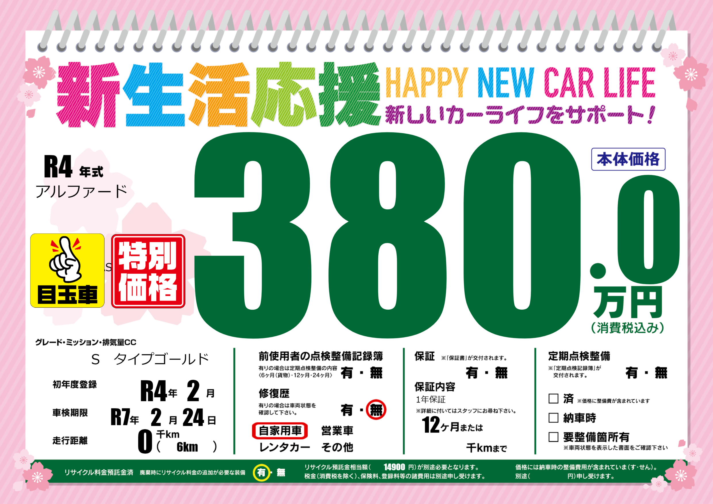| 車名 | アルファード | グレード ミッション 排気量 |