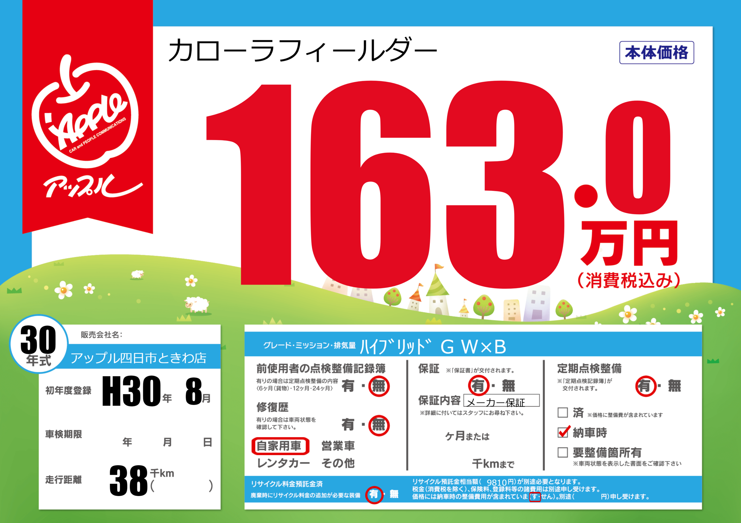 | 車名 | カローラフィールダー | グレード ミッション 排気量 |