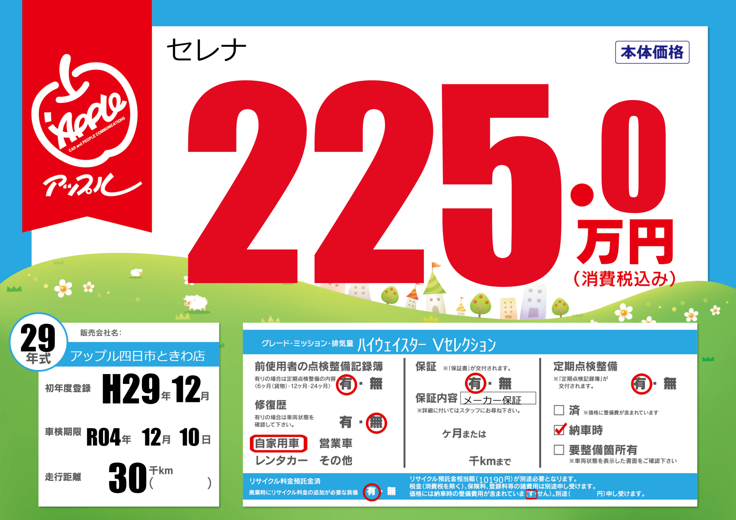 | 走行キロ | 3万km | 初年度登録 | H29年12月 |