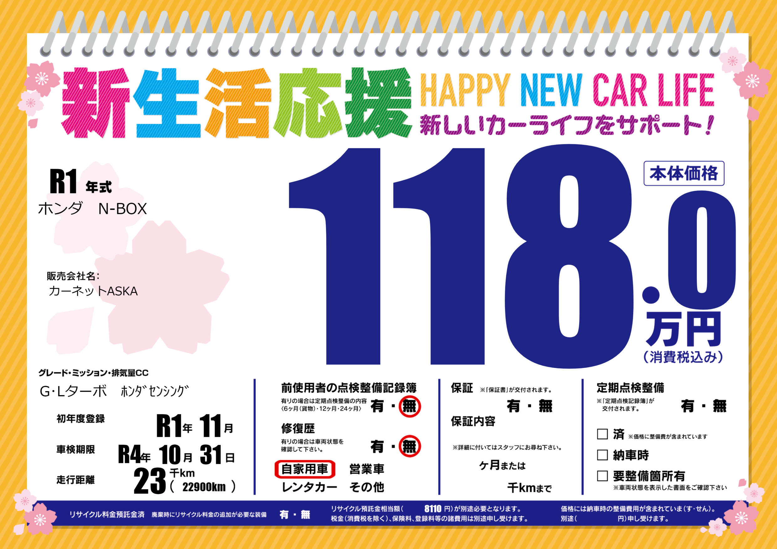 なし | 車検制限 | R4年10月31月 |