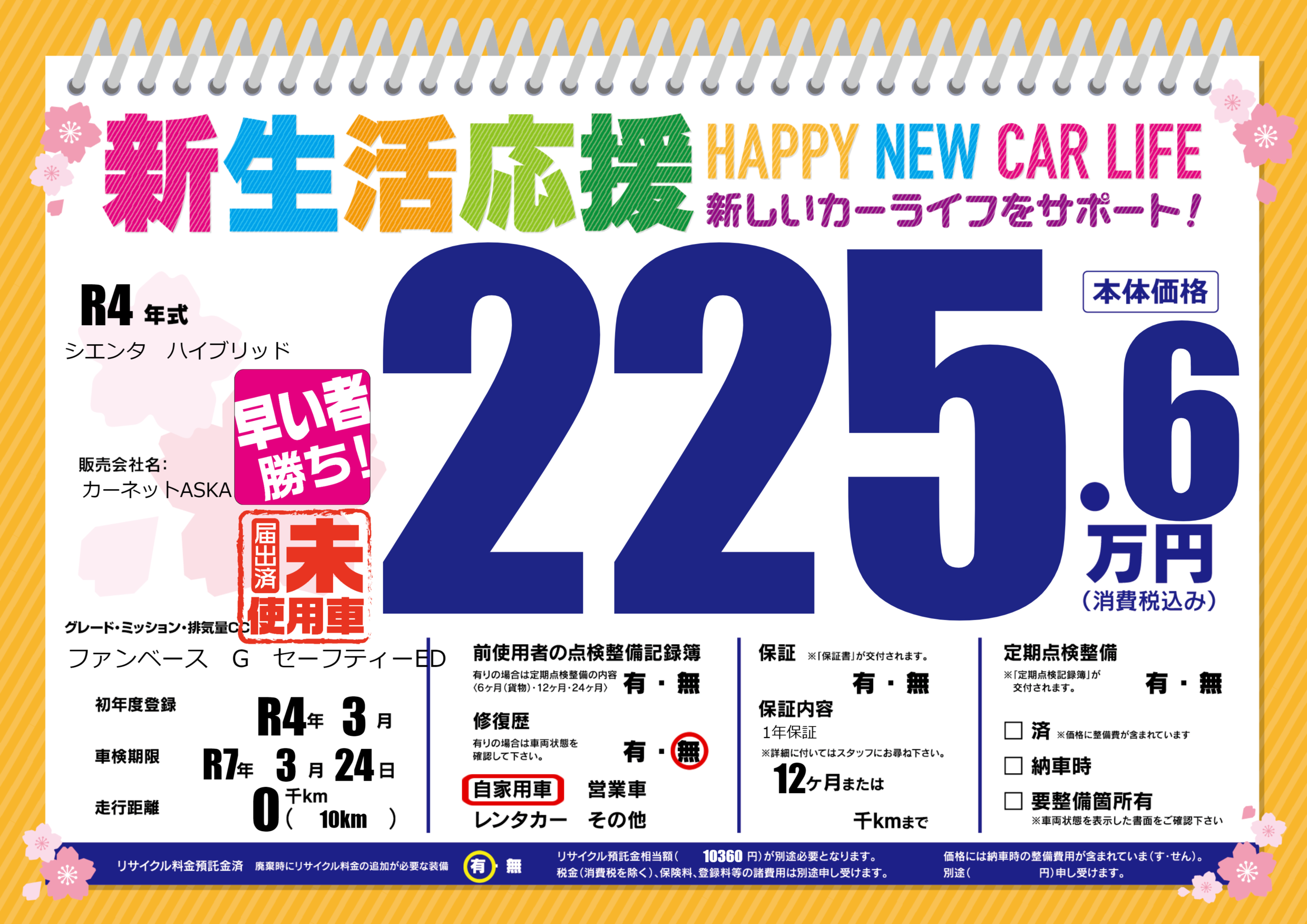 | 走行キロ | - | 初年度登録 | R4年3月 |
