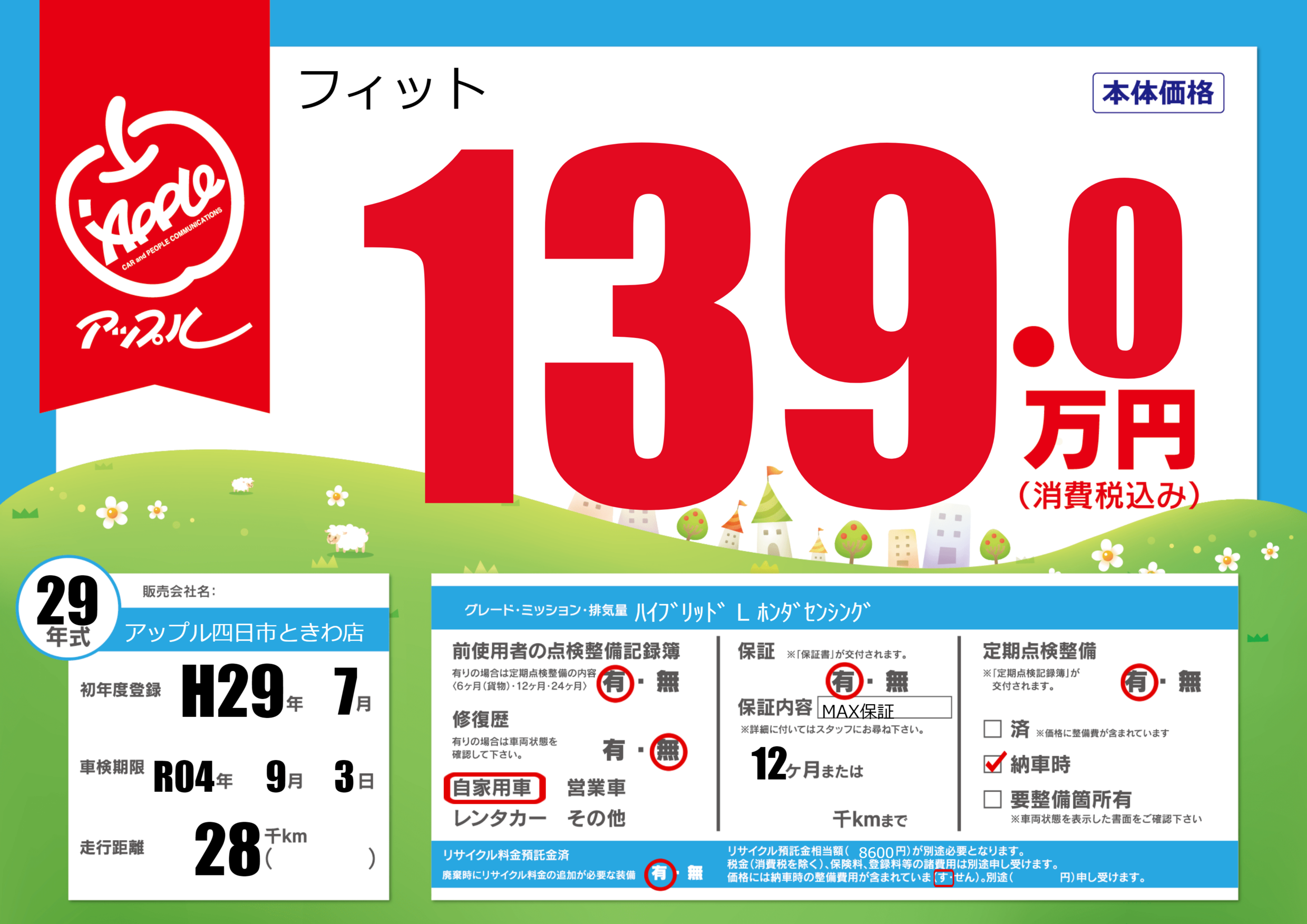 | 走行キロ | 2.8万km | 初年度登録 | H29年7月 |