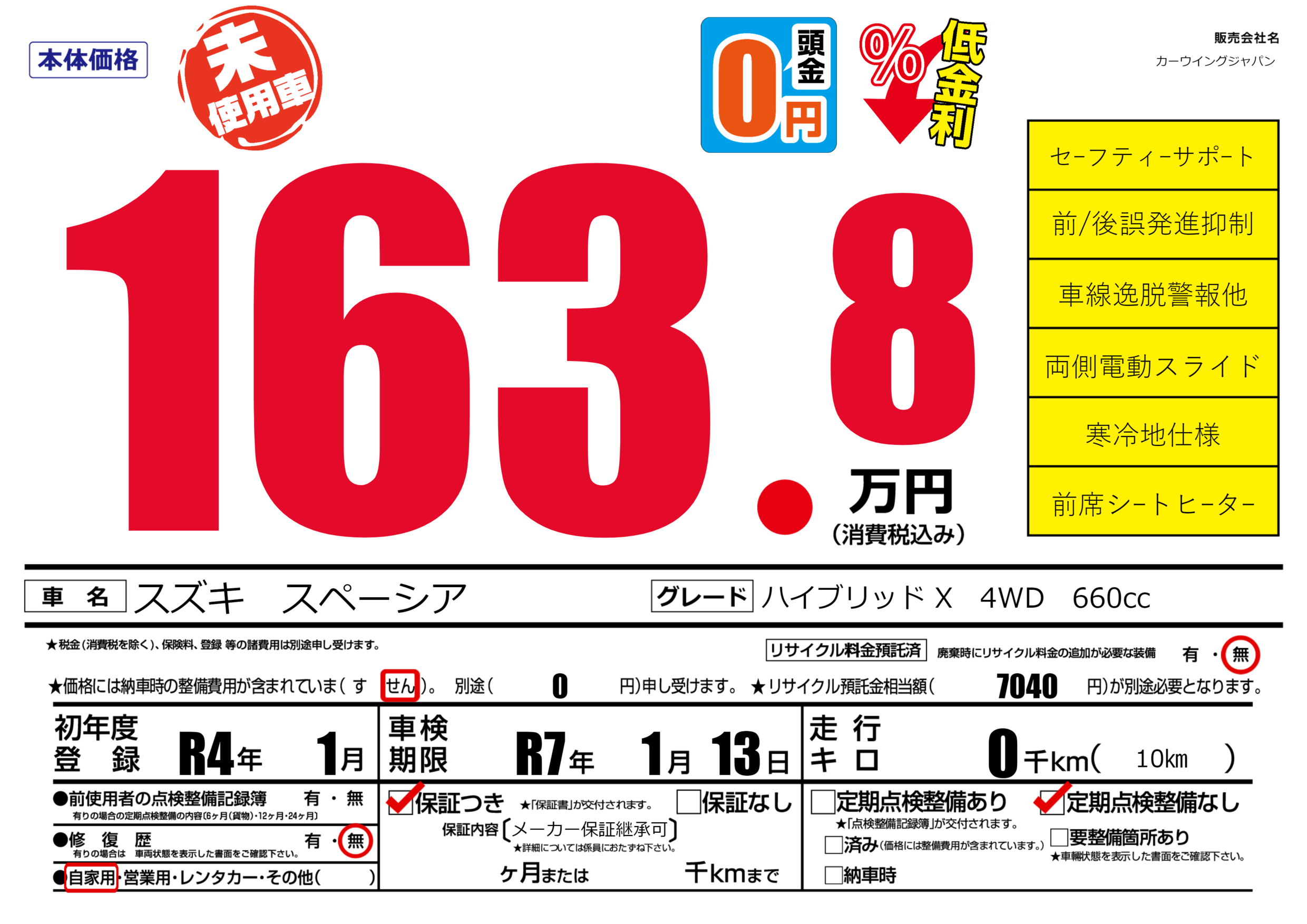 なし | 車検制限 | R7年1月13月 |
