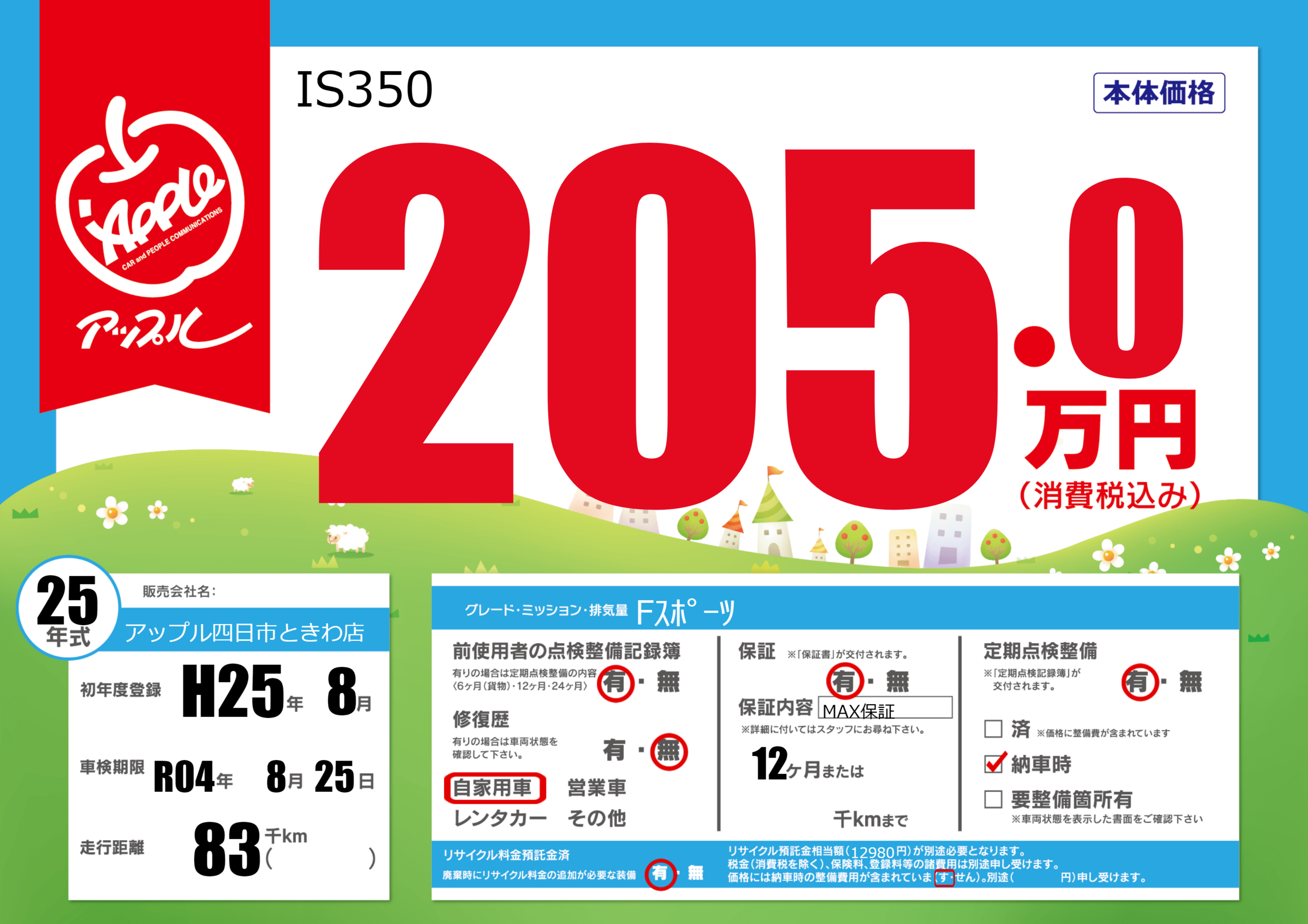 | 車名 | IS350 | グレード ミッション 排気量 |