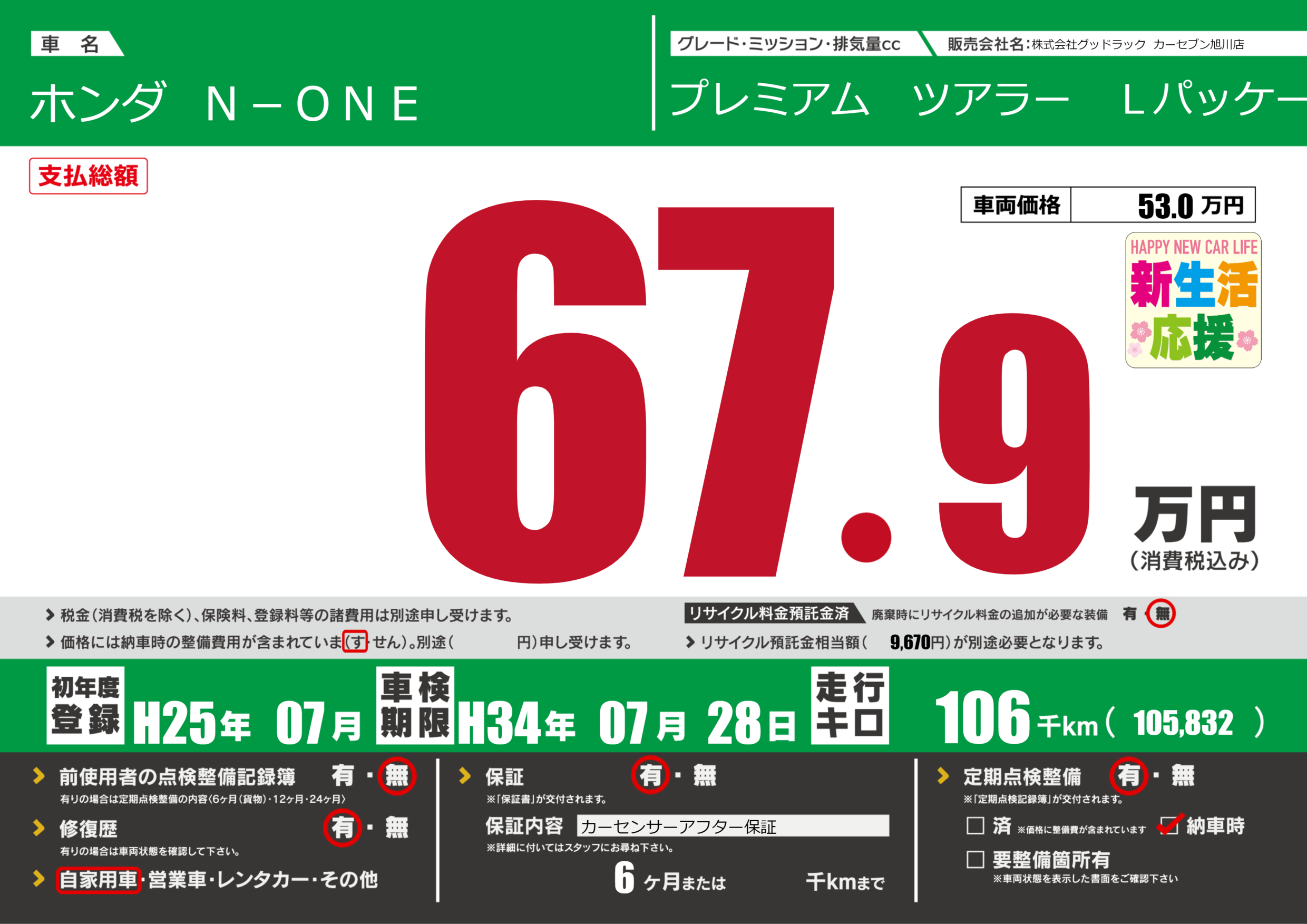 | 定期点検整備 | 定期点検整備あり 納車時あり | ||