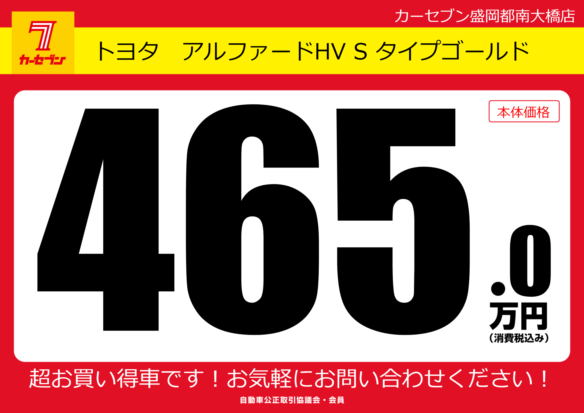| 車名 | トヨタ アルファードHV S タイプゴールド | グレード ミッション 排気量 |