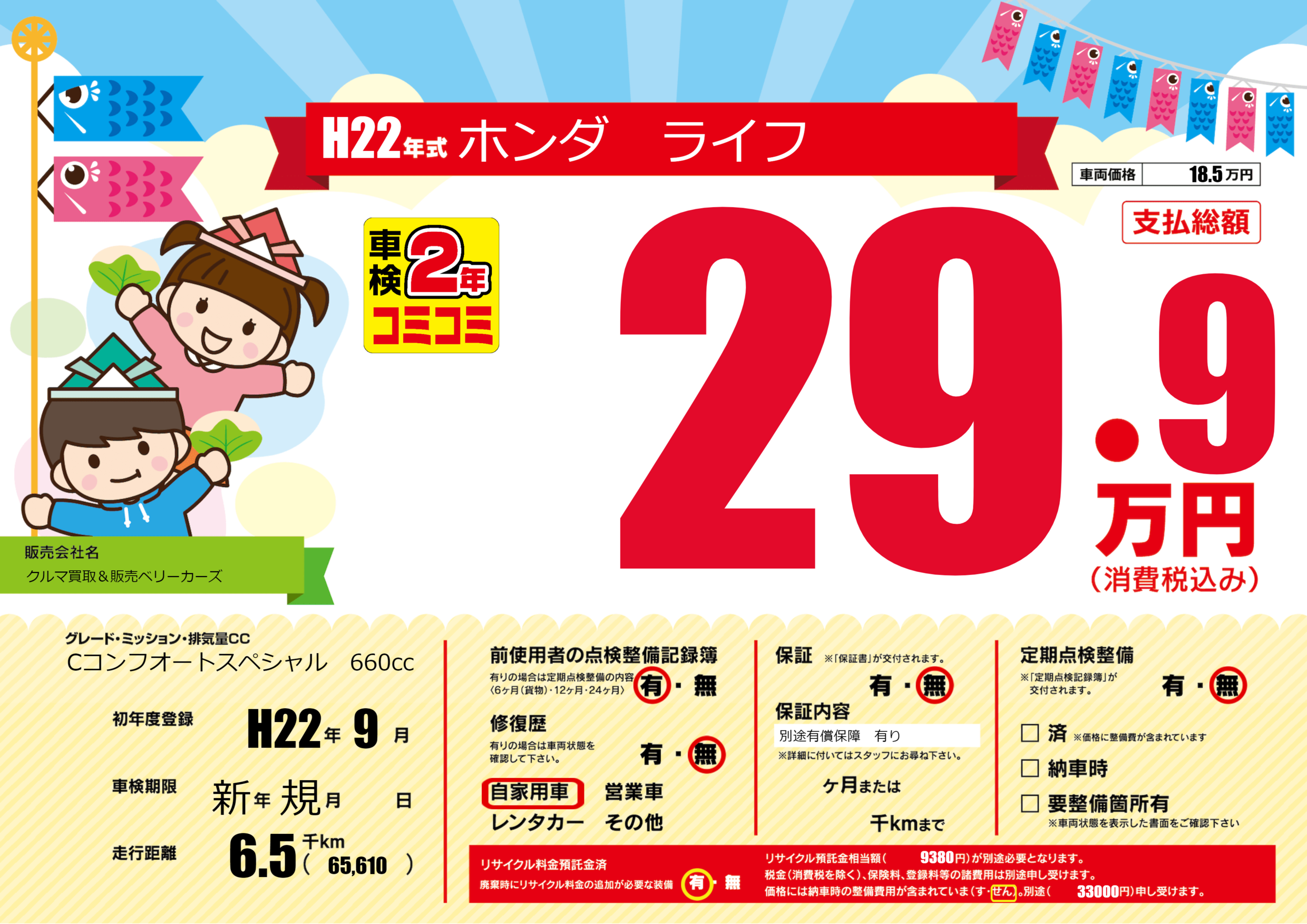 | 車名 | ホンダ ライフ | グレード ミッション 排気量 |