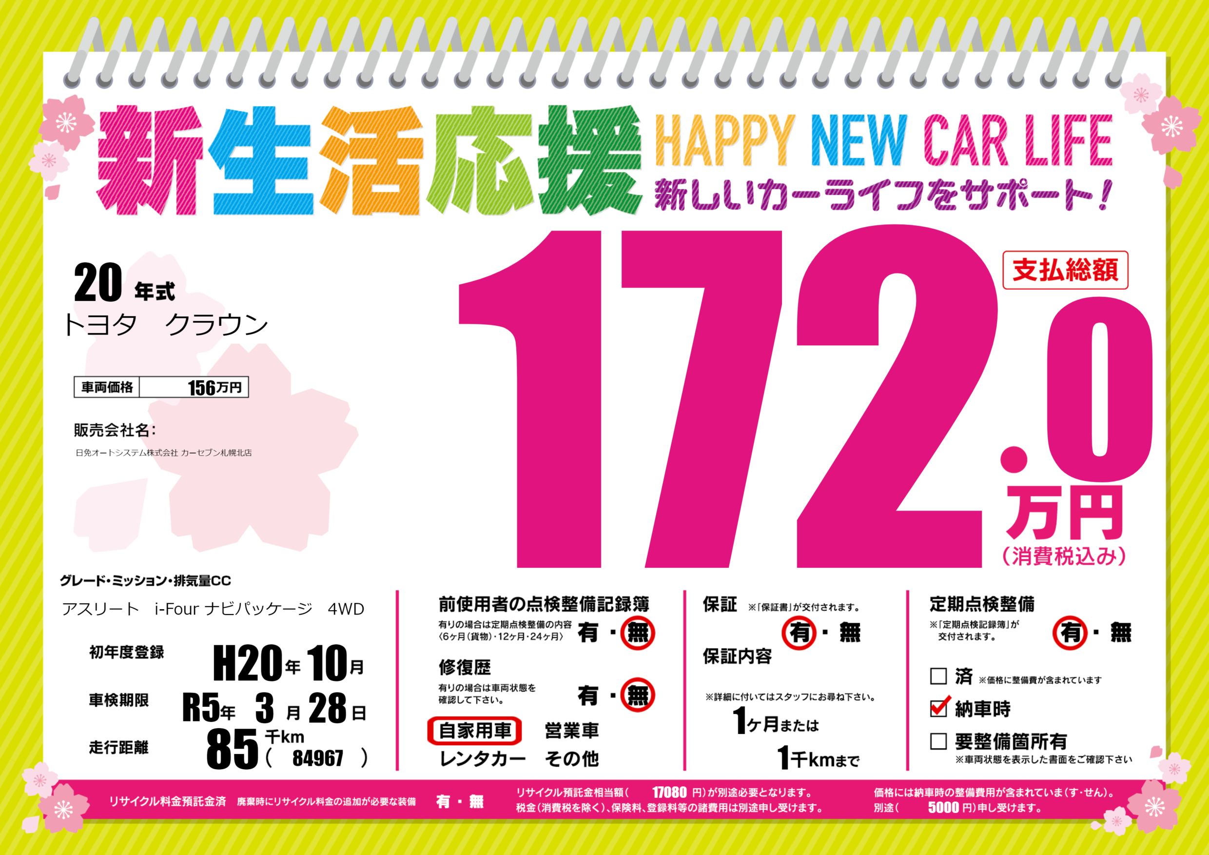 車検制限 | R5年3月28月 |