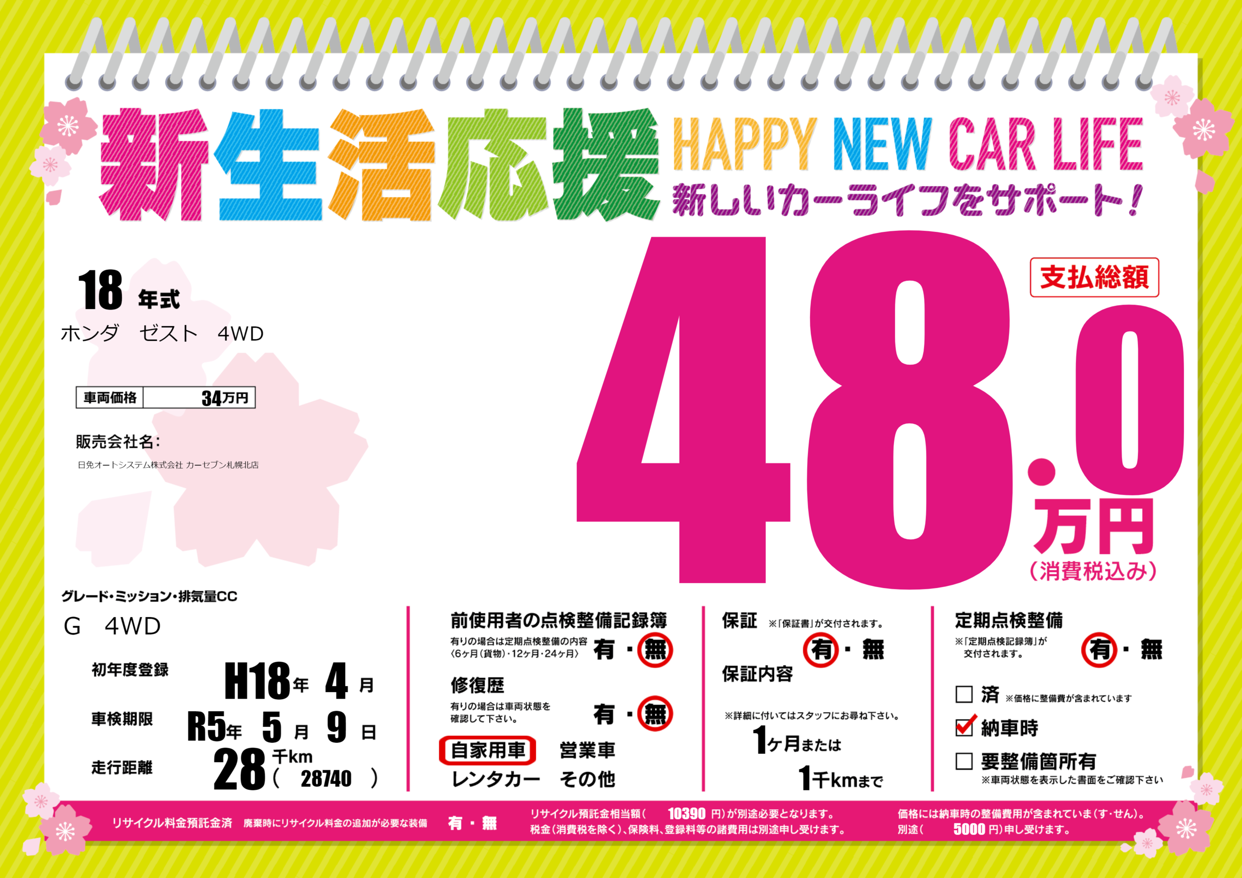 | 車検制限 | R5年 5月 9日 | ||