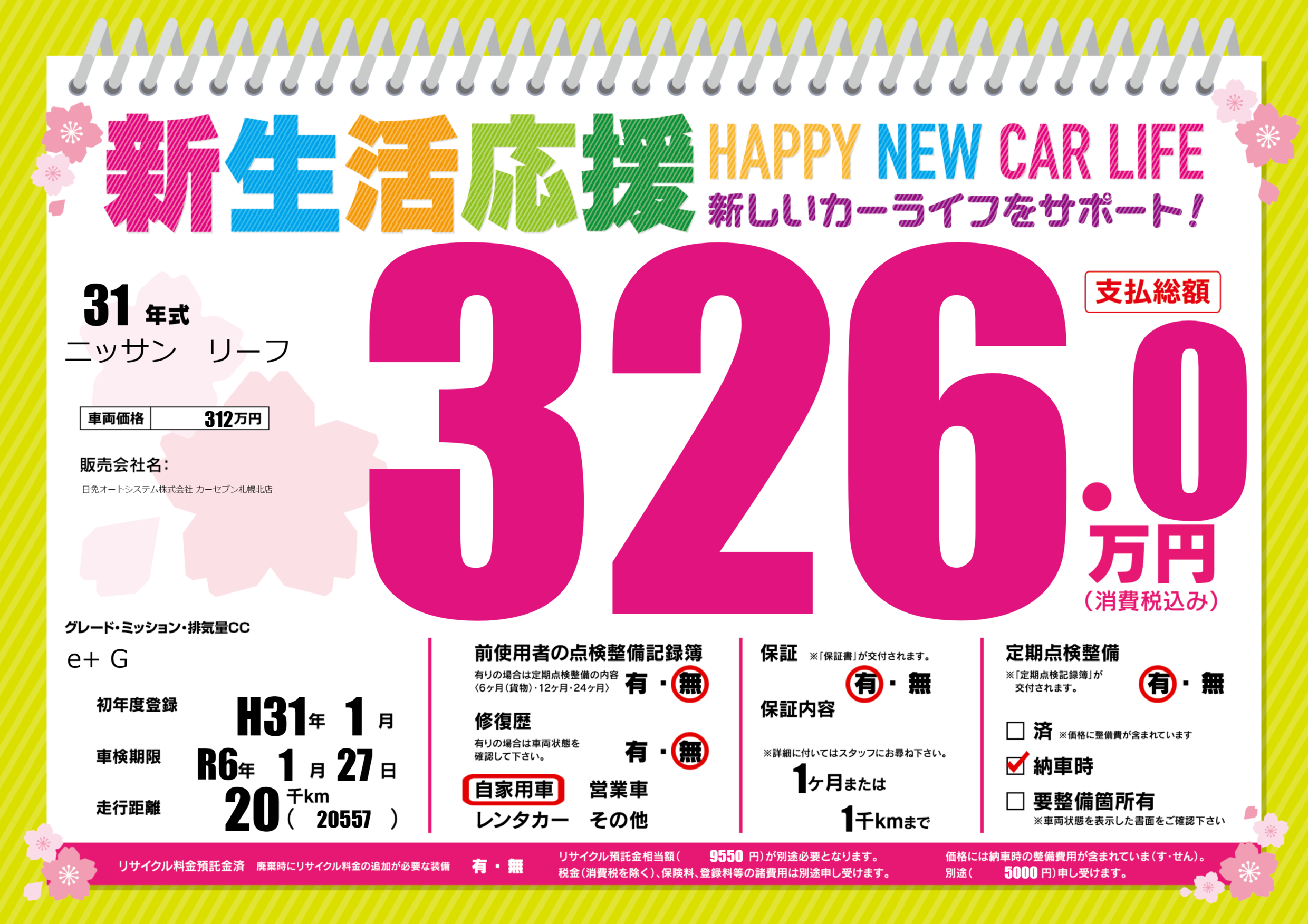 | 定期点検整備 | 定期点検整備あり 納車時あり | ||