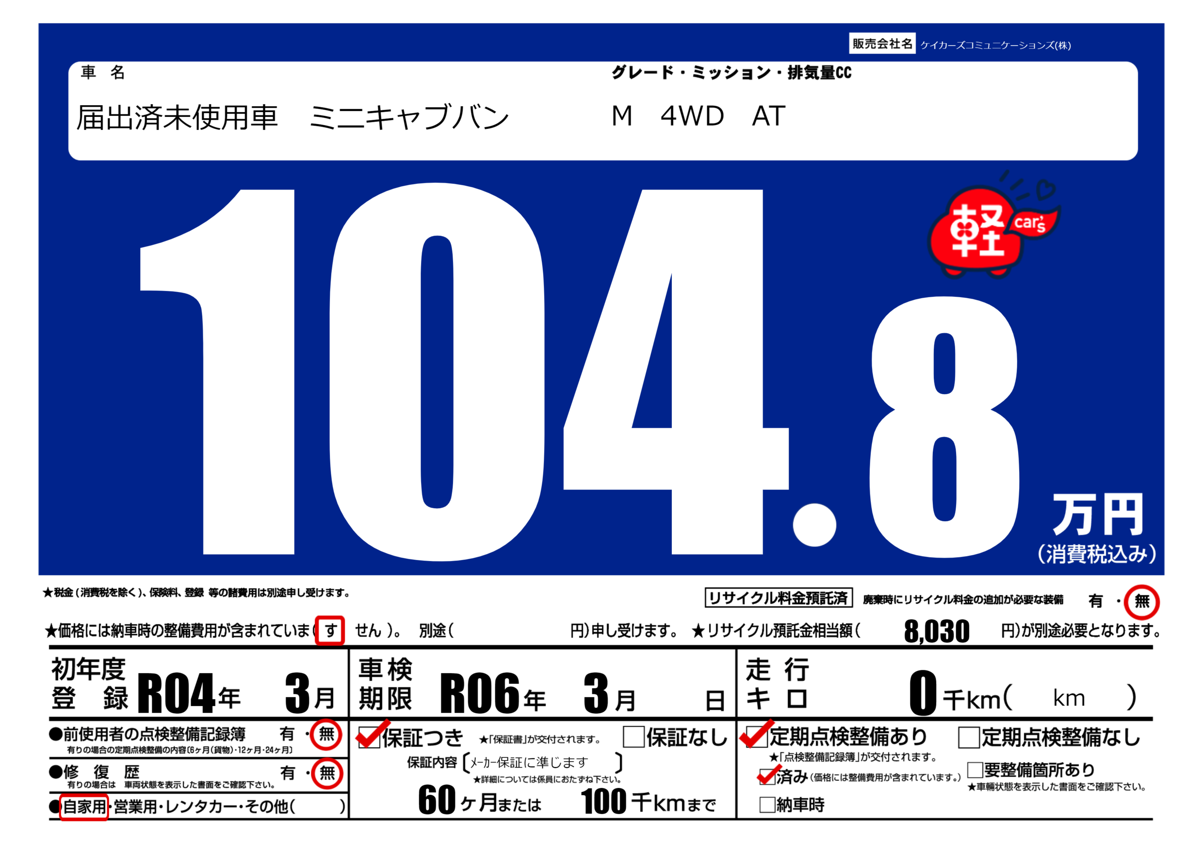 | 定期点検整備 | 定期点検整備あり 定期点検整備済み | ||