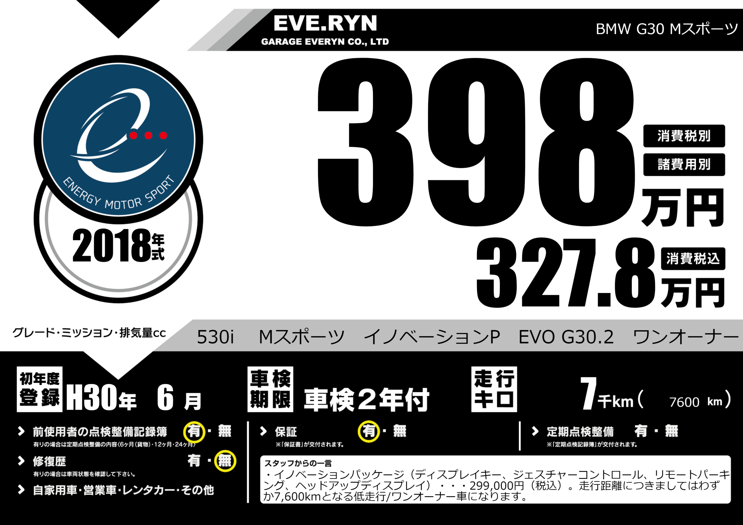 530i Mスポーツ イノベーションP EVO G30.2 ワンオーナー |