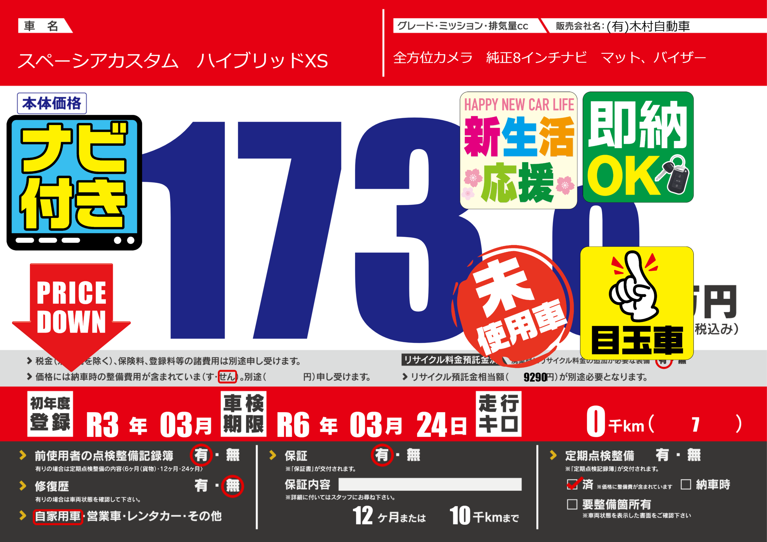 | 定期点検整備 | 定期点検整備済み | ||