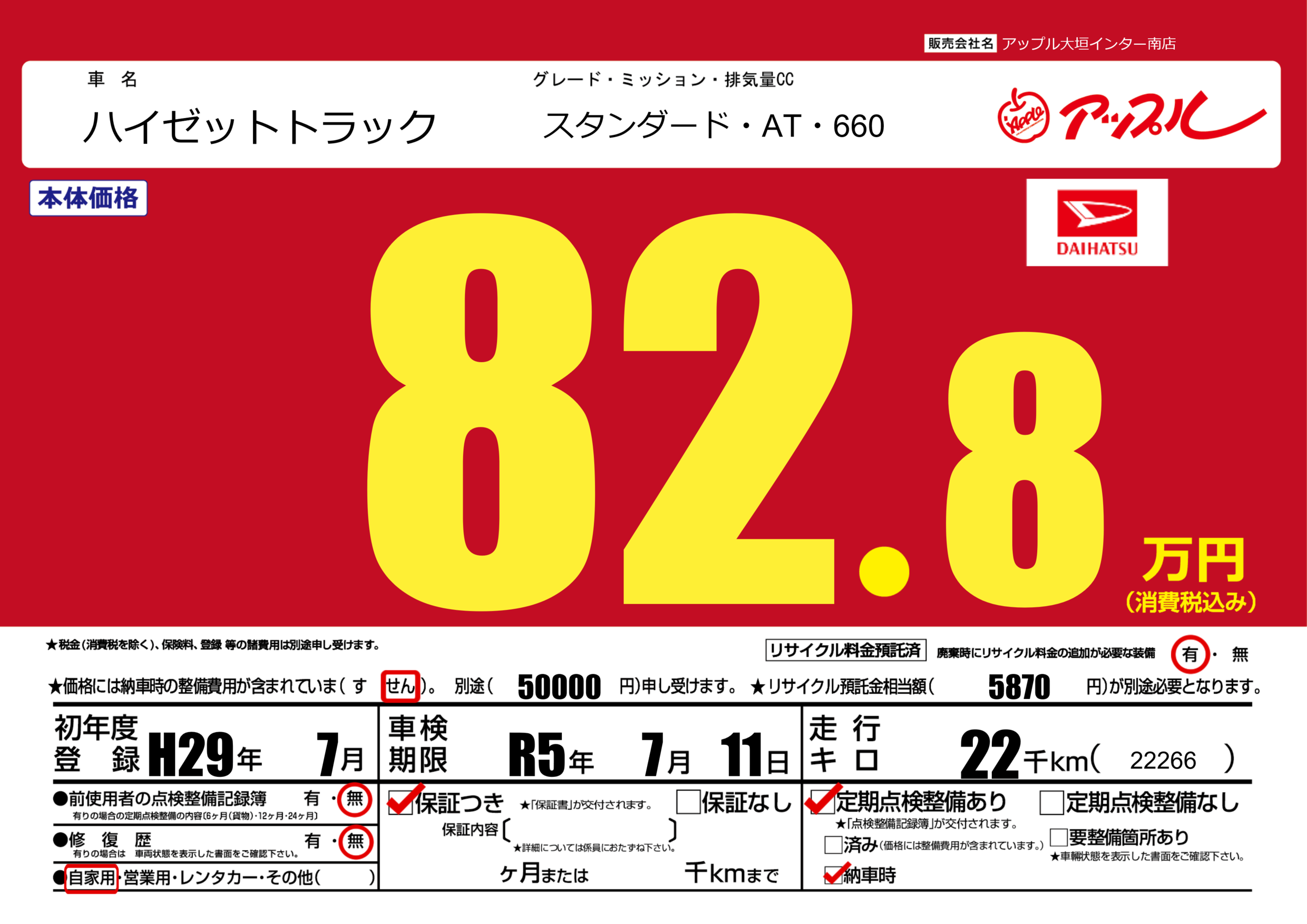 | 定期点検整備 | 定期点検整備あり 納車時あり | ||