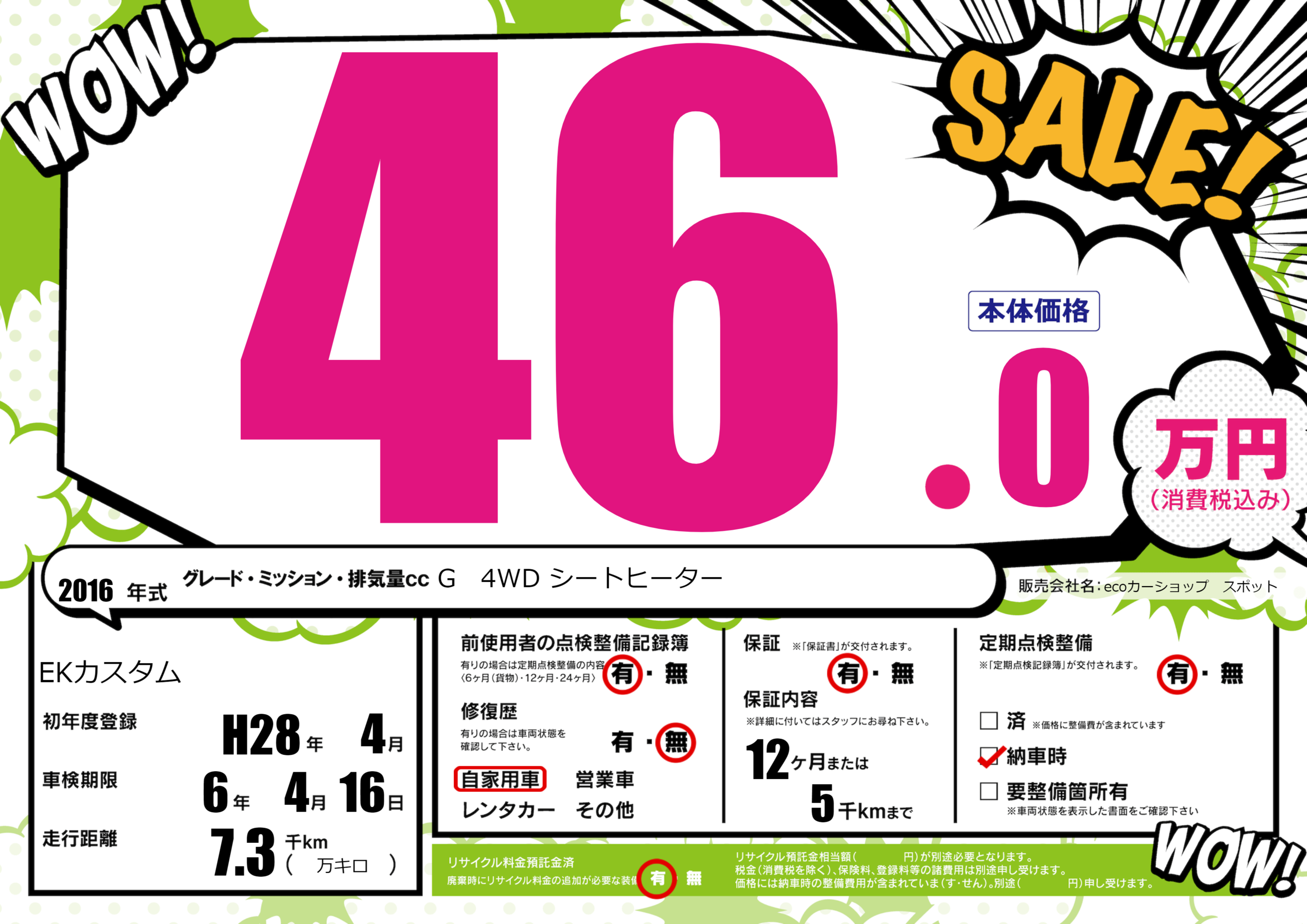 | 車名 | EKカスタム | グレード ミッション 排気量 |