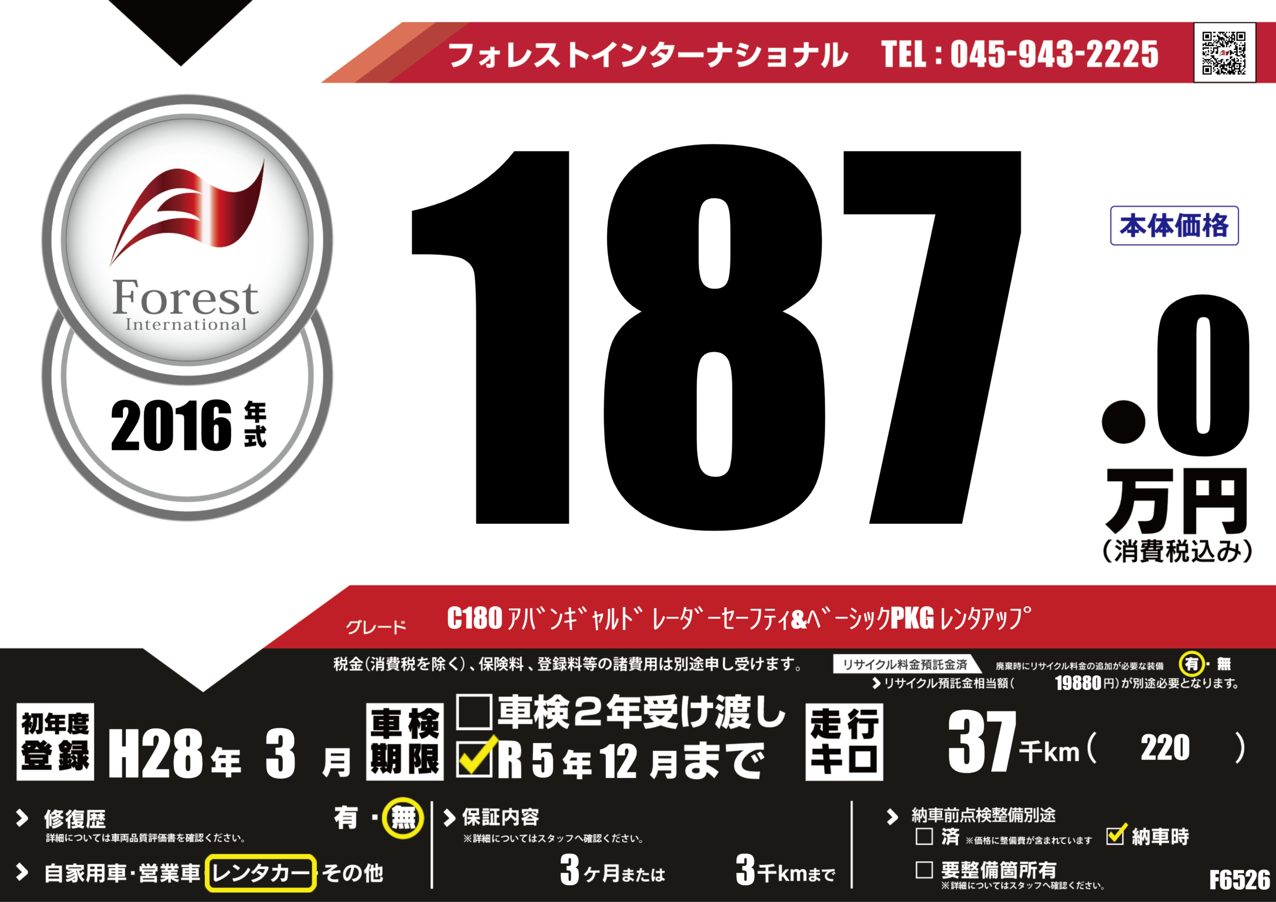 C180 アバンギャルド レーダーセーフティ&ベーシックPKG レンタアップ |