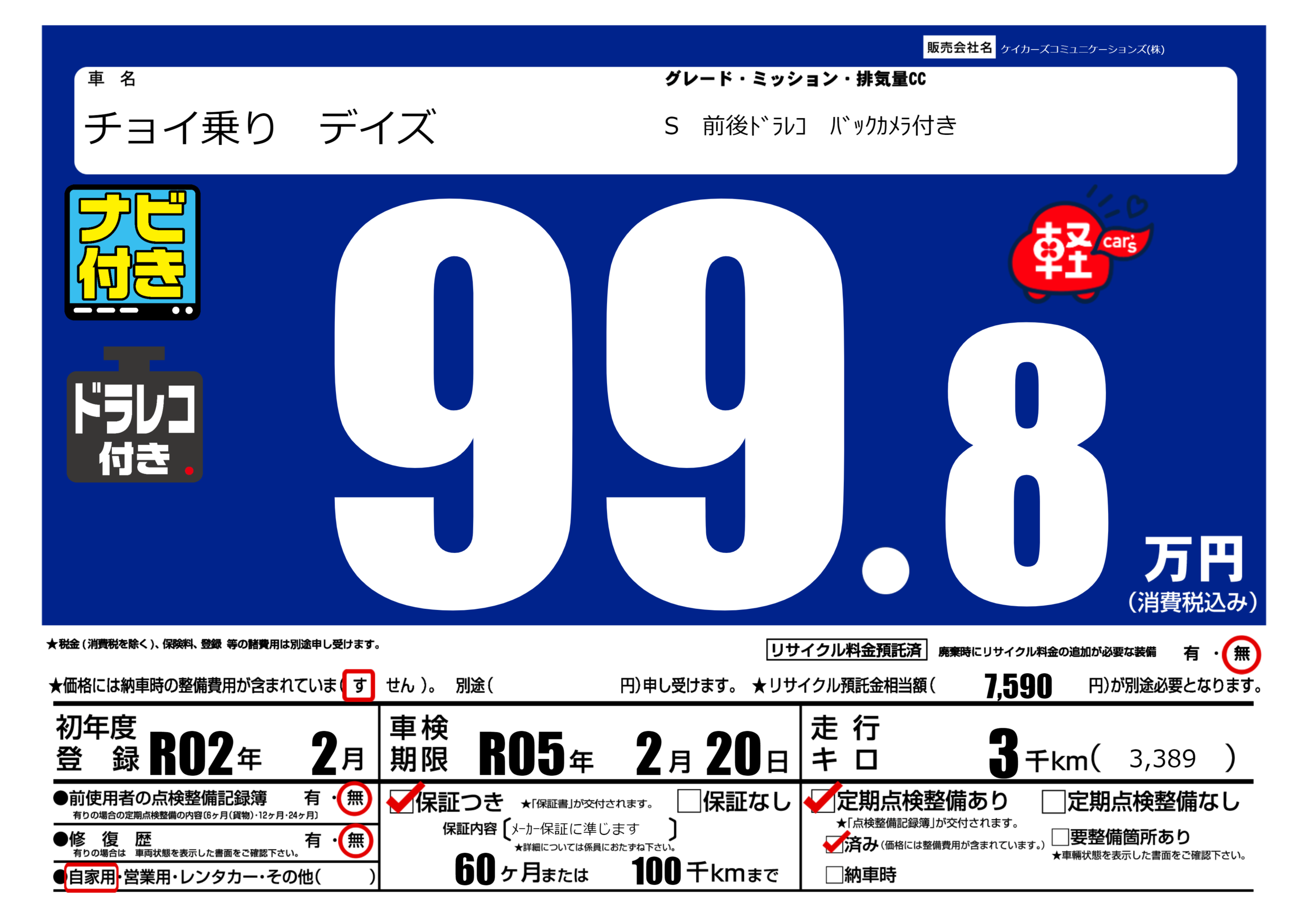| 定期点検整備 | 定期点検整備あり 定期点検整備済み | ||