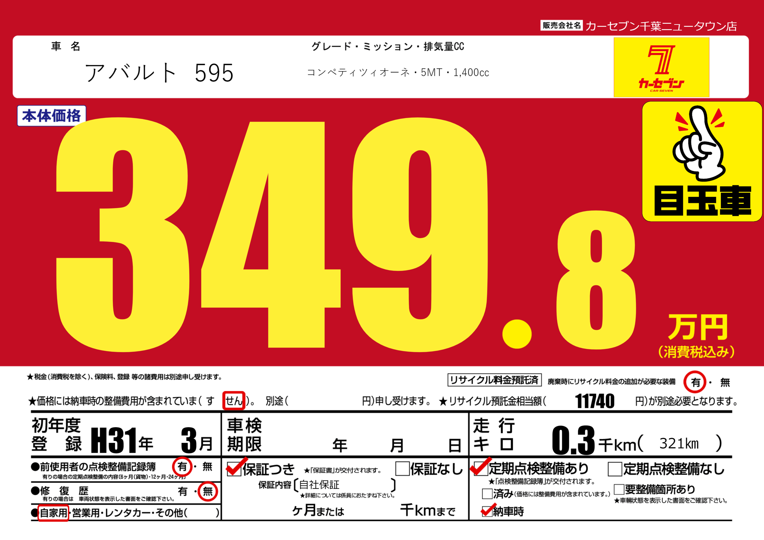 | 車名 | アバルト 595 | グレード ミッション 排気量 |