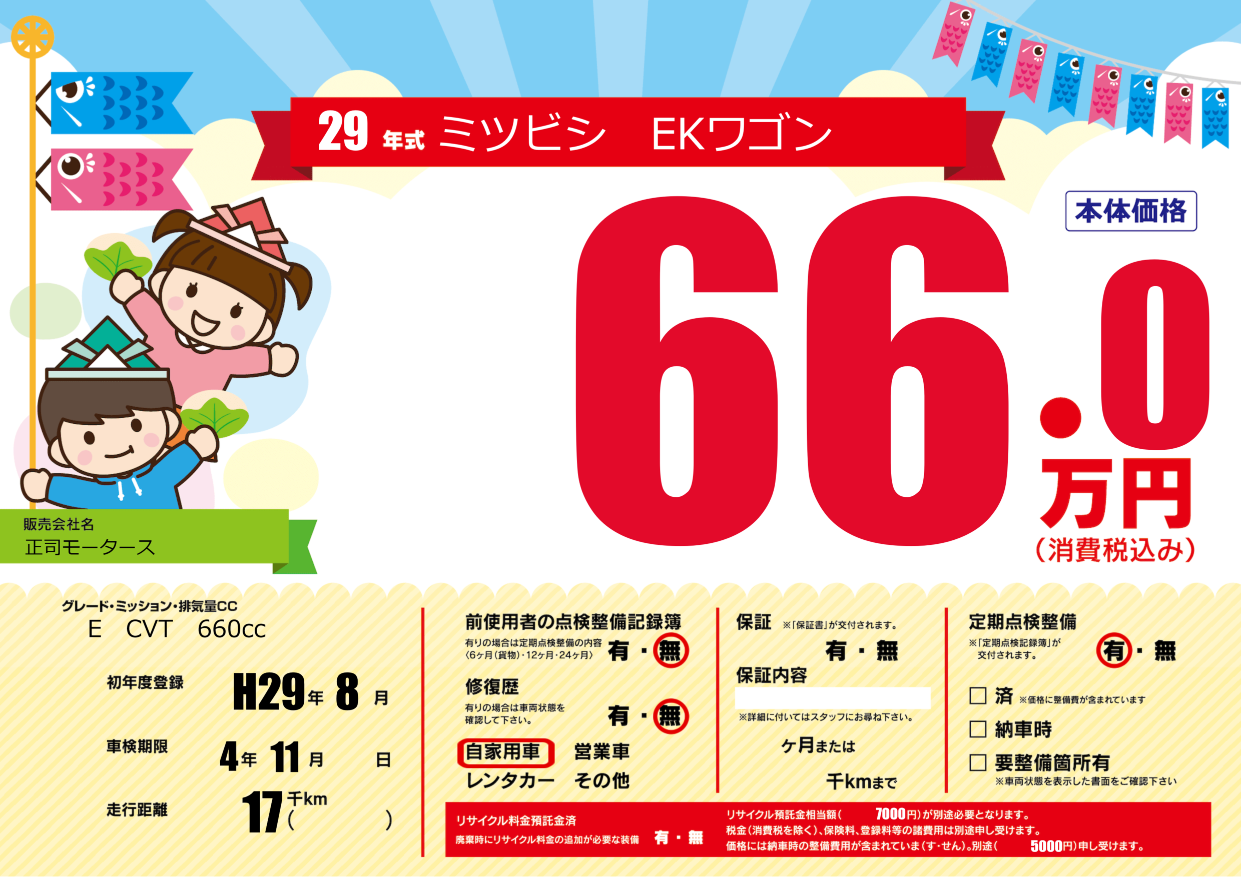 | 車名 | ミツビシ EKワゴン | グレード ミッション 排気量 |