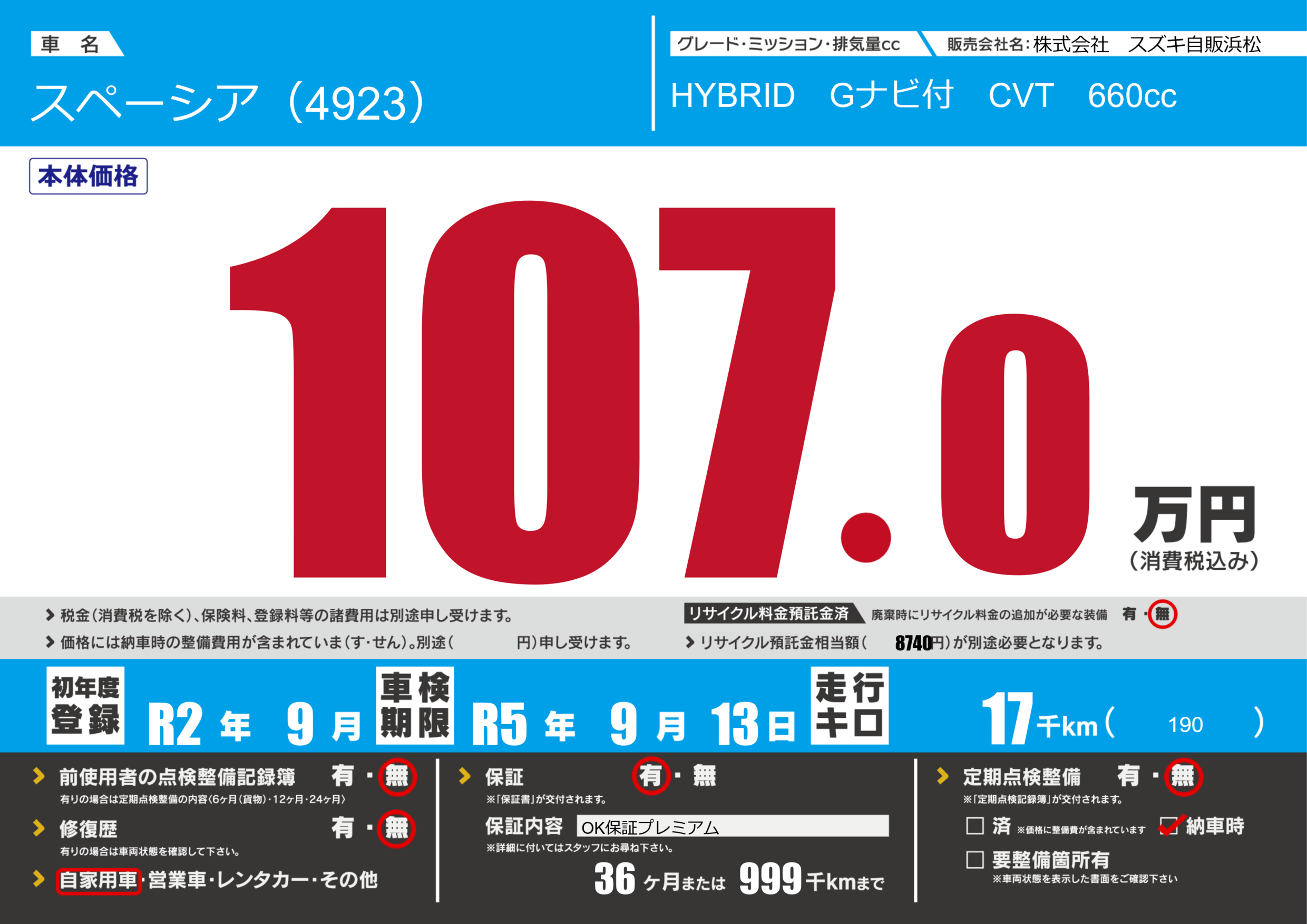 なし | 車検制限 | R5年9月13月 |