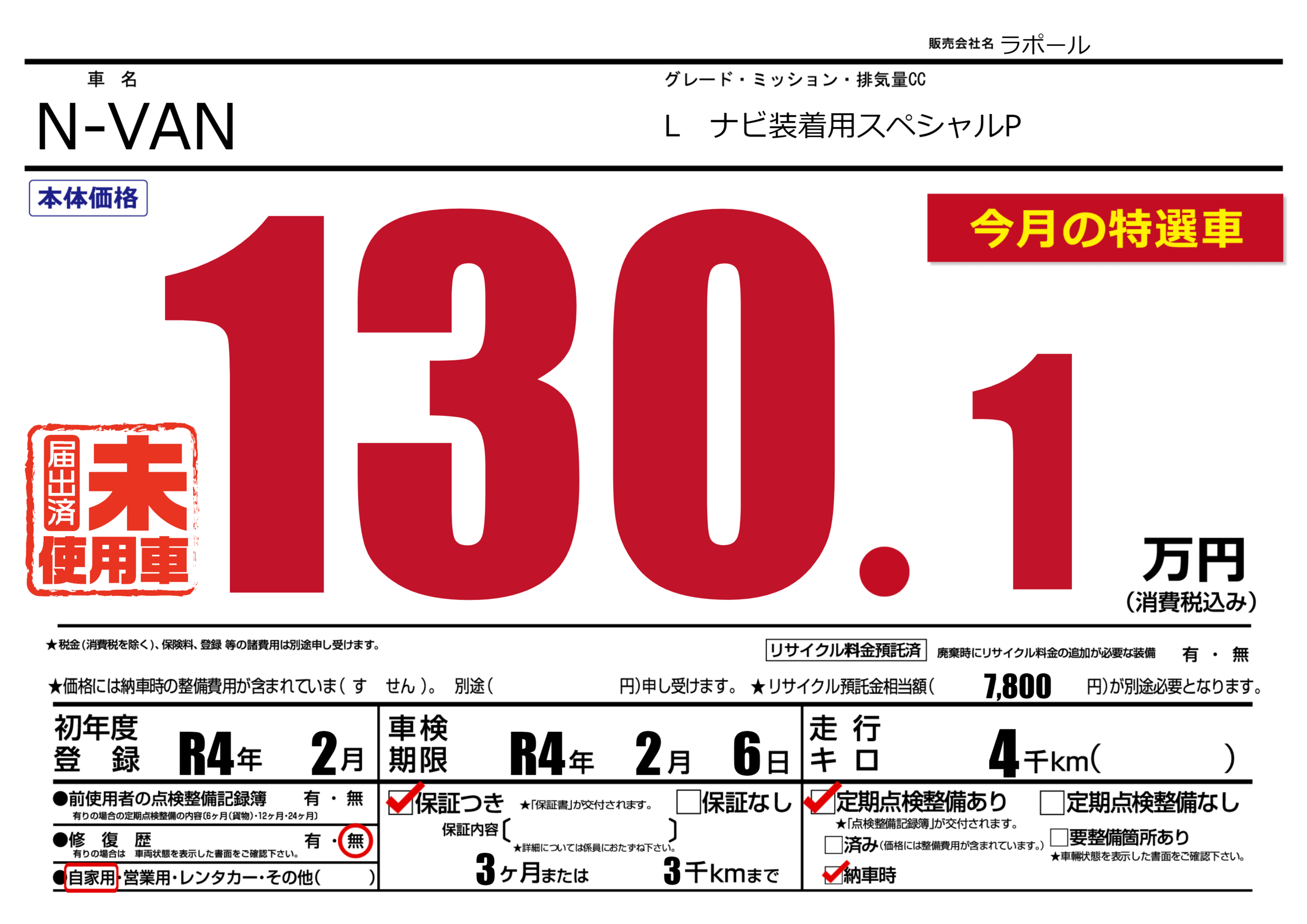 | 車検制限 | R4年 2月 6日 | ||
