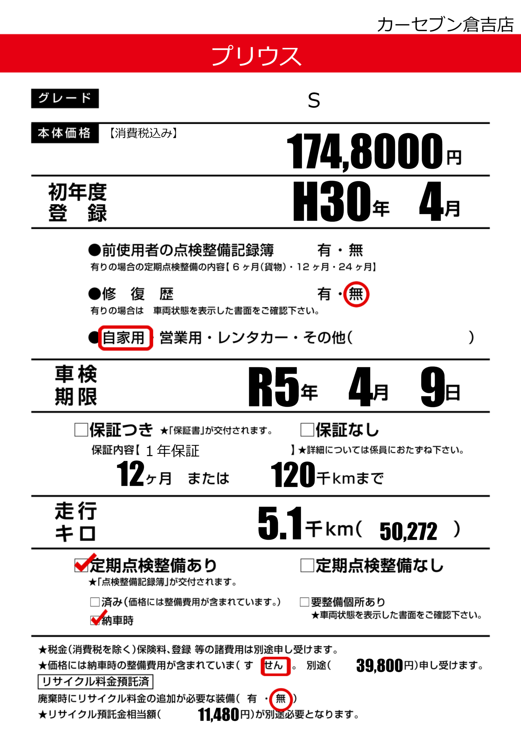 カーセブン鳥取倉吉店の展示車をすべて見る