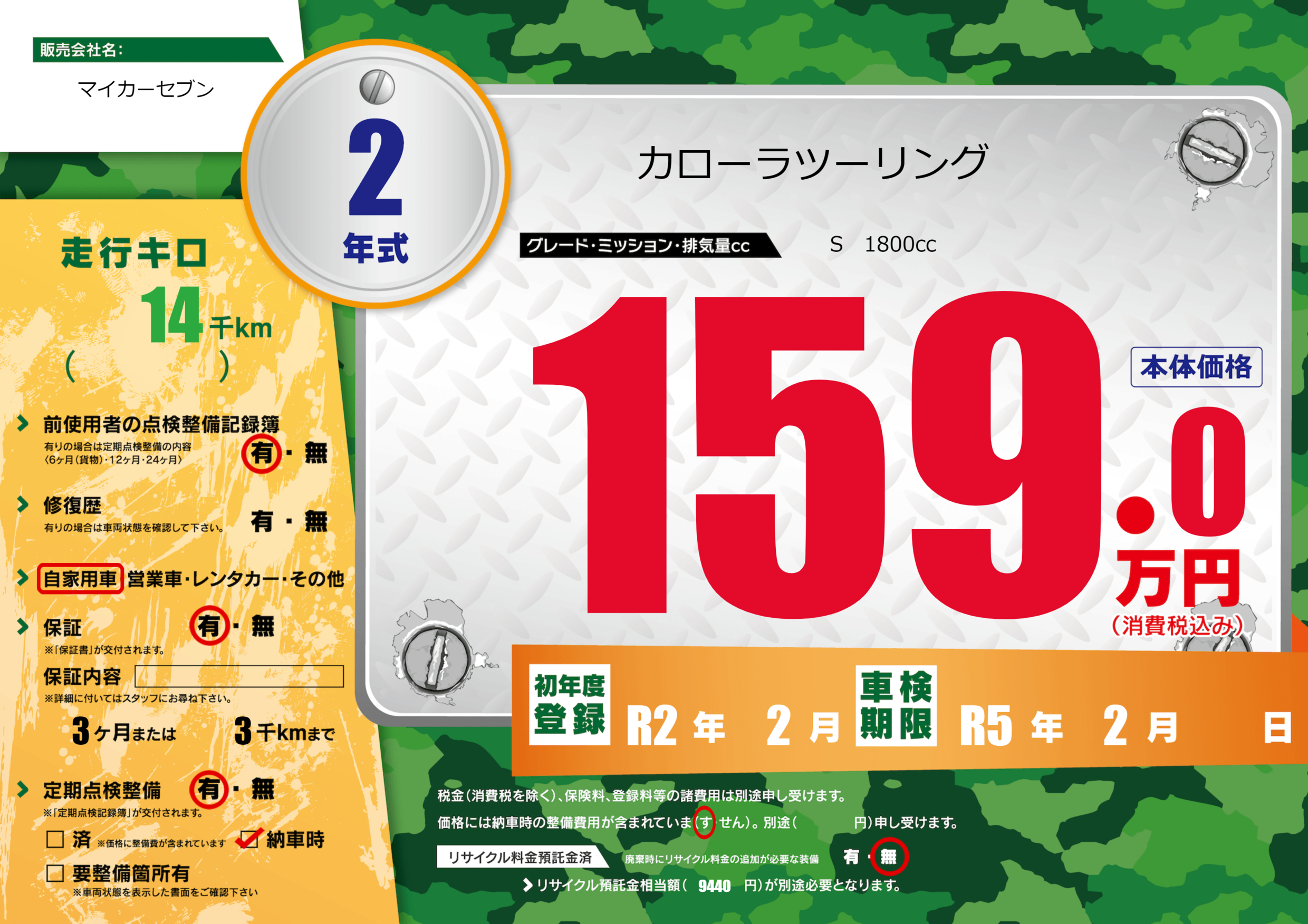 あり | 車検制限 | R5年2月---月 |