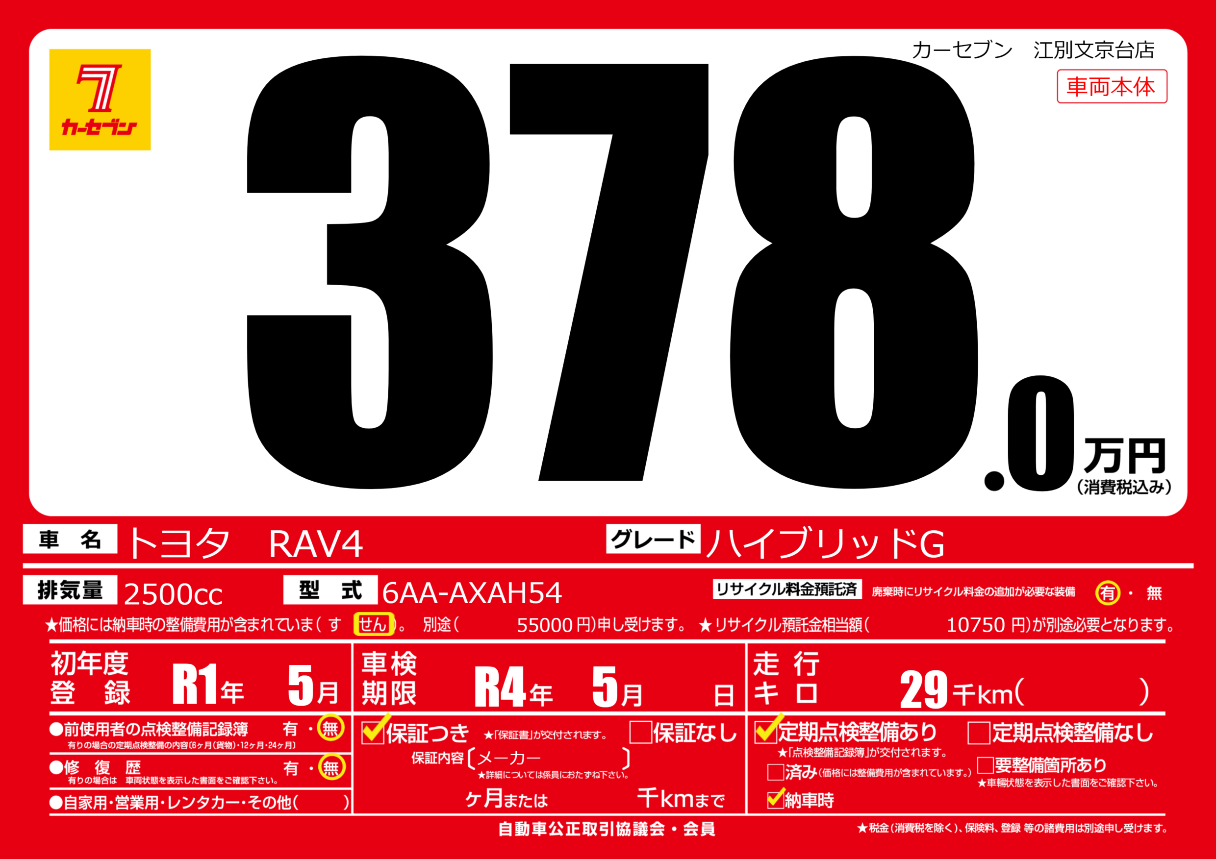 | 走行キロ | 2.9万km | ||