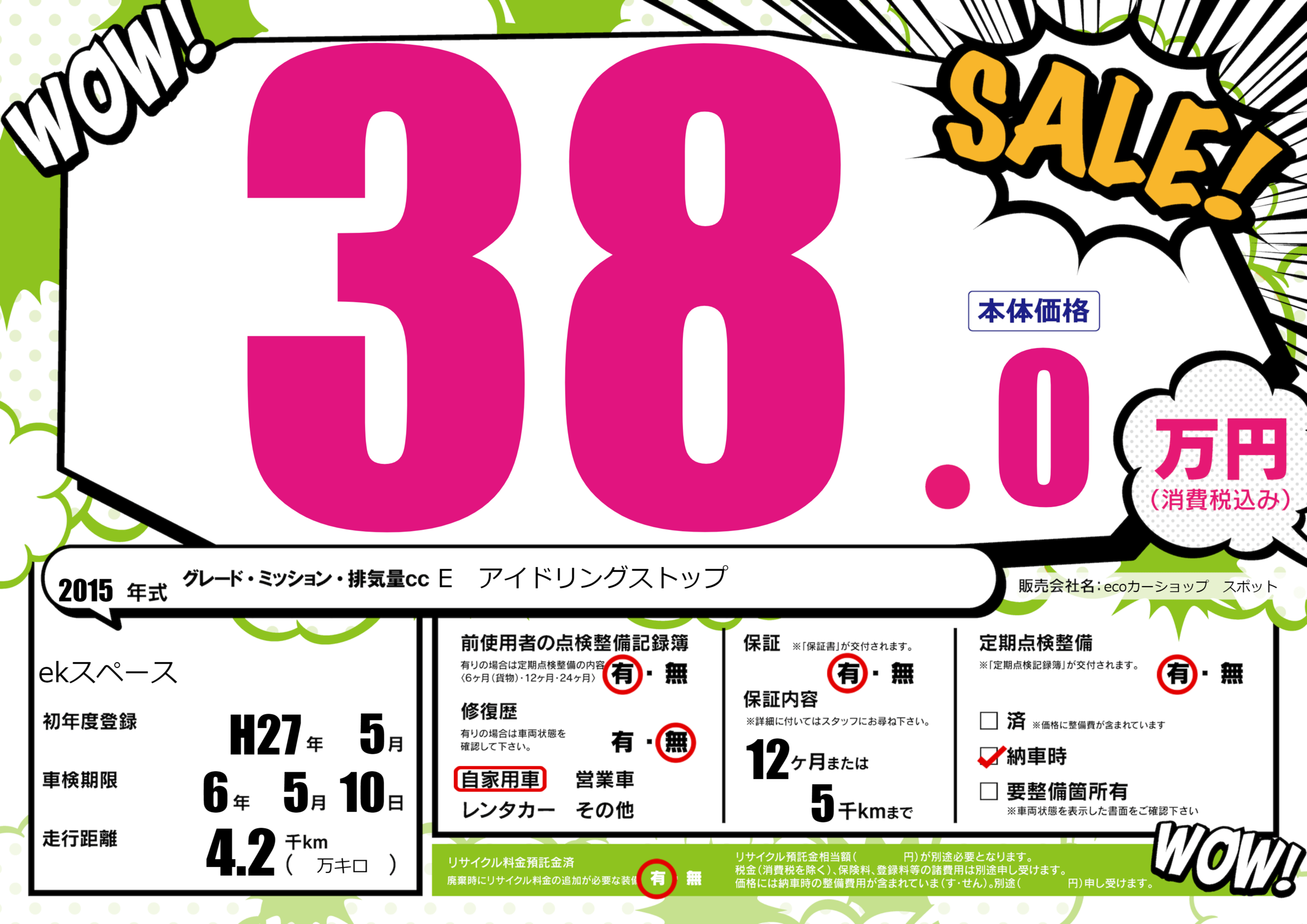| 車名 | ekスペース | グレード ミッション 排気量 |