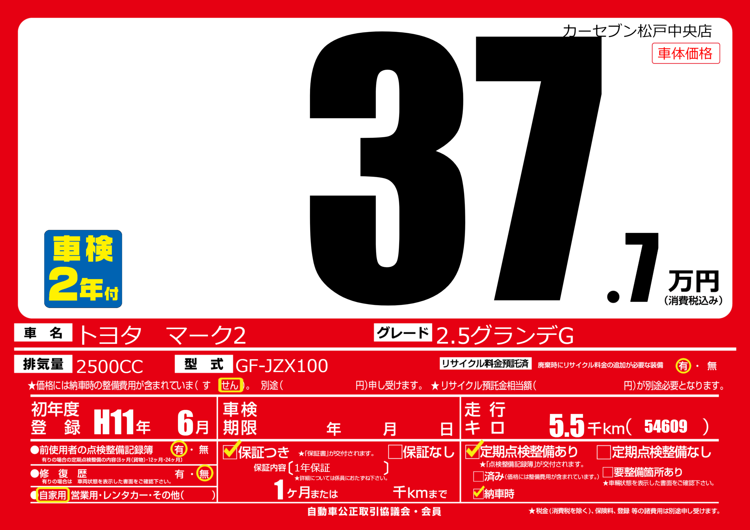 | 車名 | トヨタ マーク2 | グレード ミッション 排気量 |