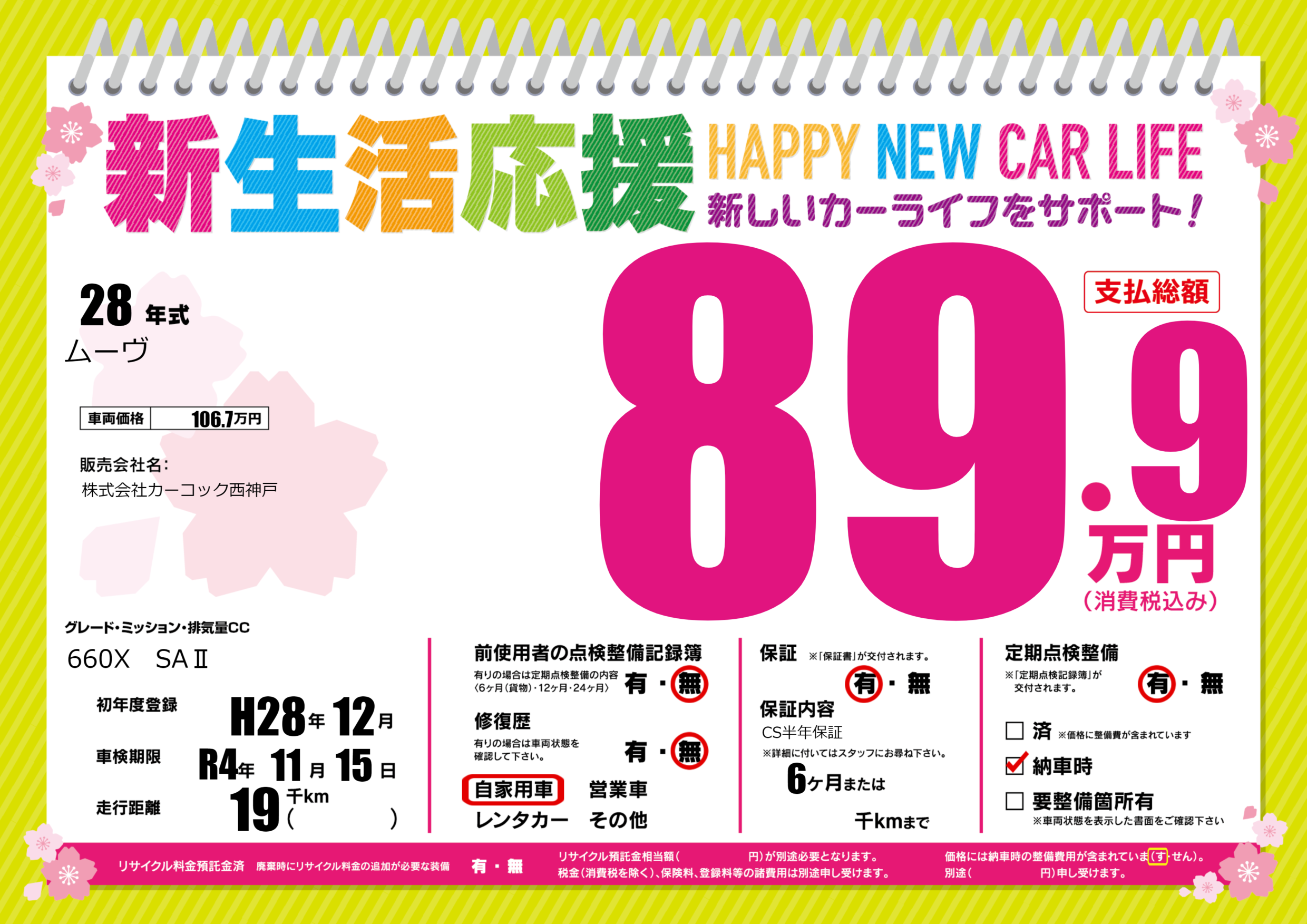| 定期点検整備 | 定期点検整備あり 納車時あり | ||