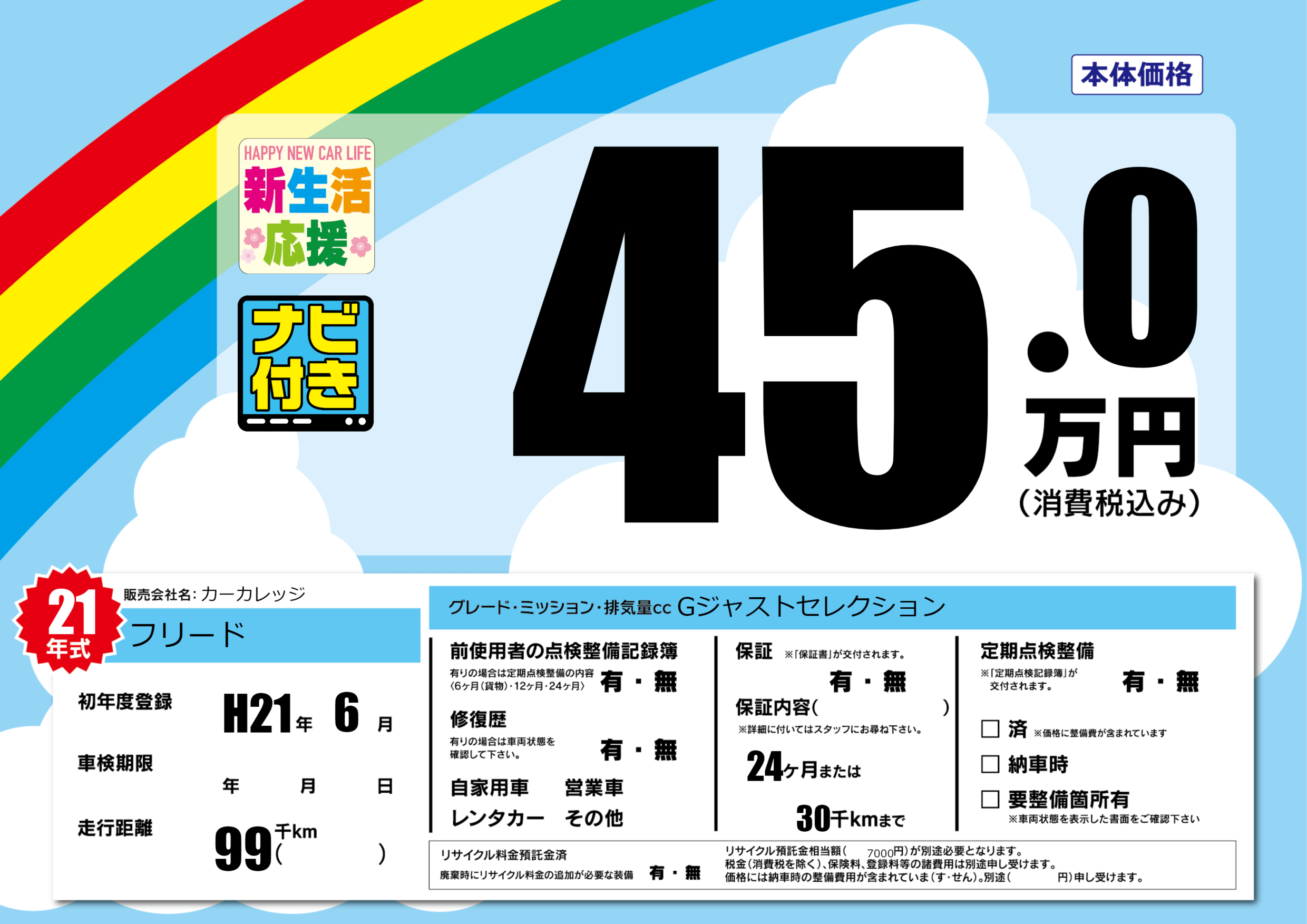 | 走行キロ | 9.9万km | 初年度登録 | H21年6月 |