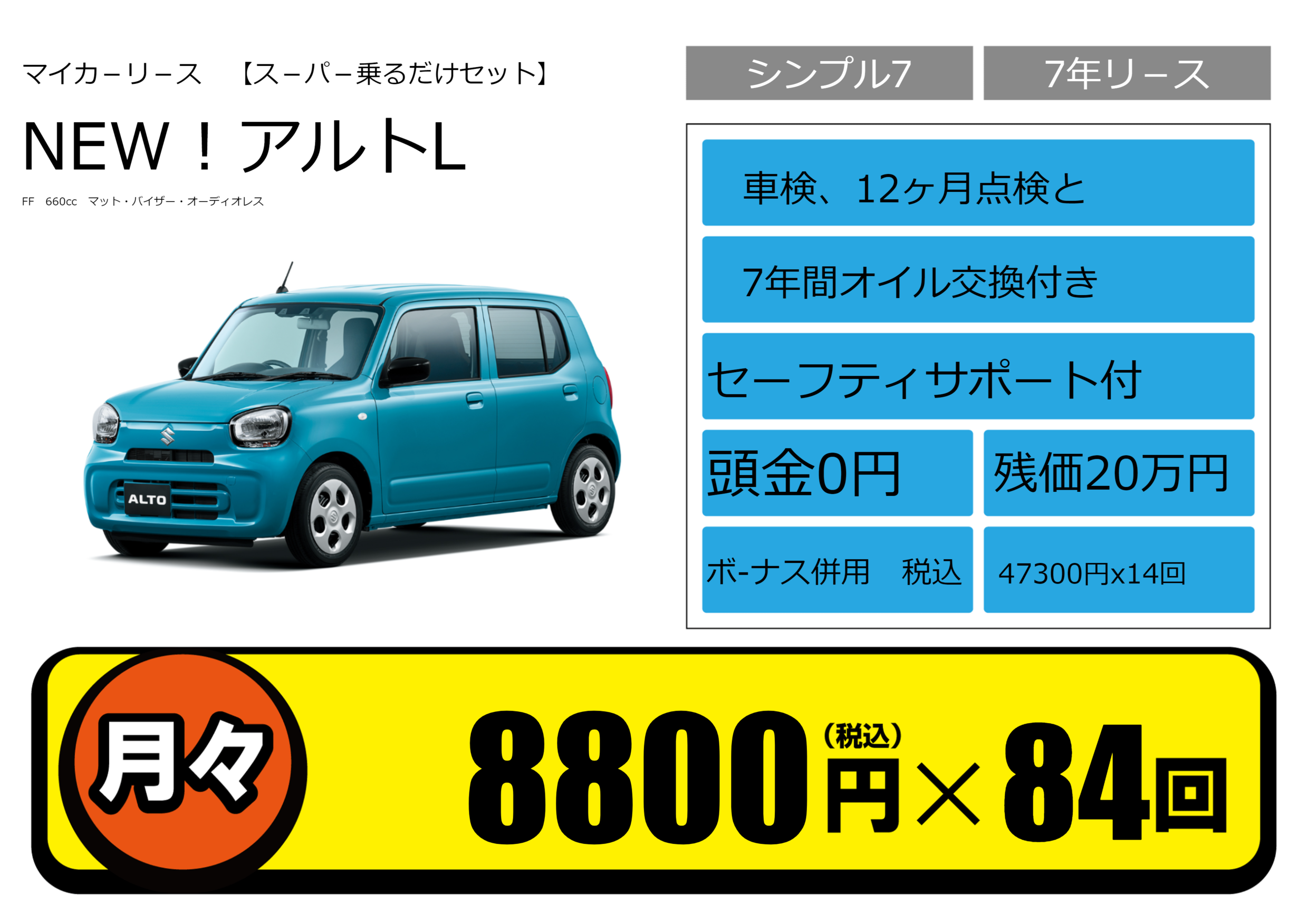 | 車名 | NEW!アルトL | グレード ミッション 排気量 |