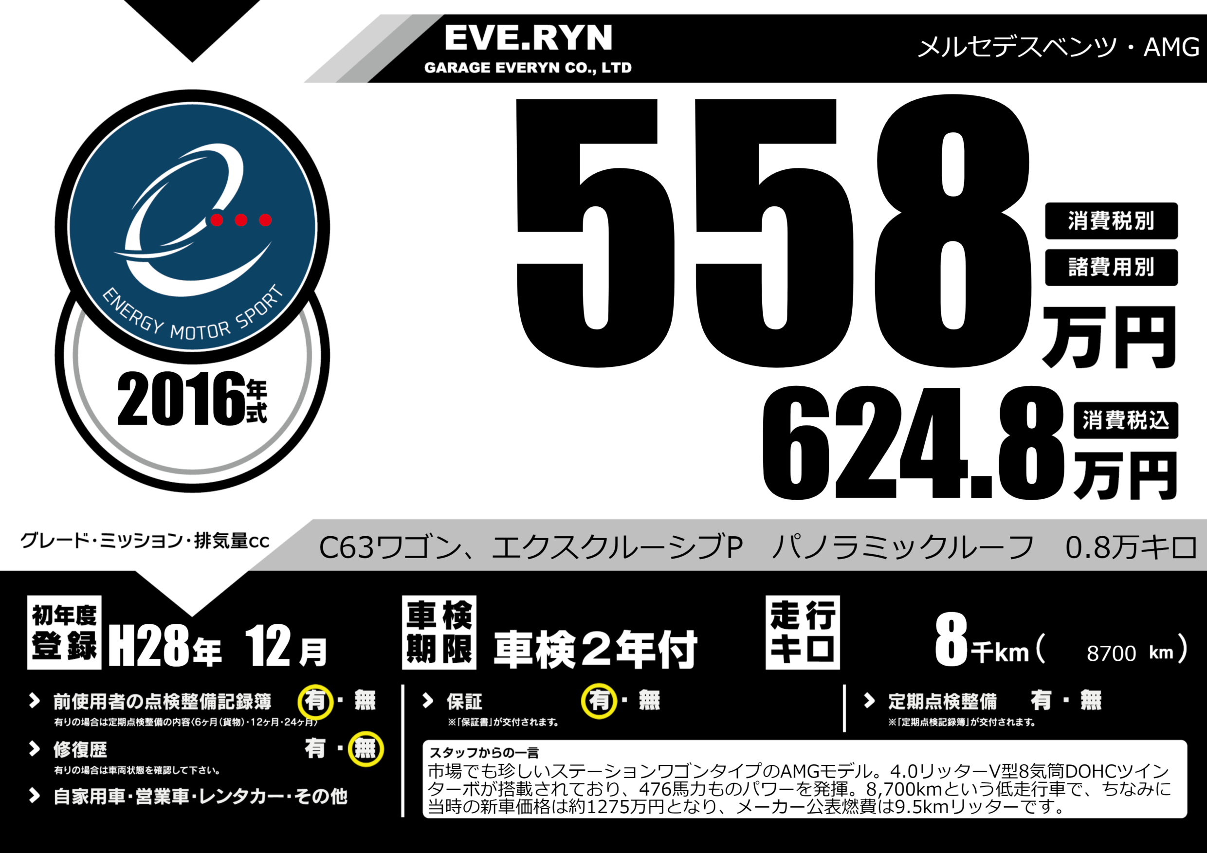C63ワゴン、エクスクルーシブP パノラミックルーフ 0.8万キロ |