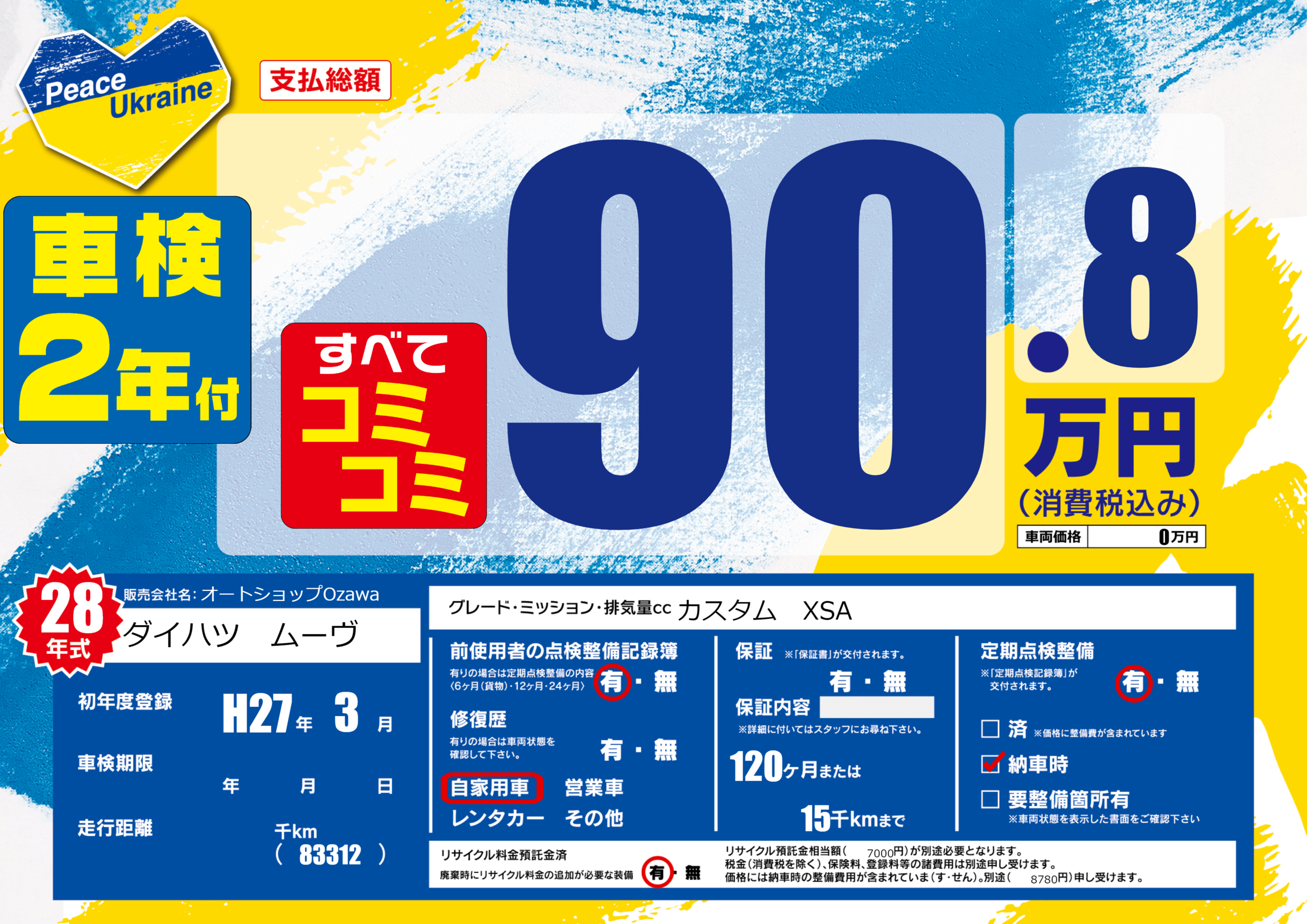| 走行キロ | - | 初年度登録 | H27年3月 |