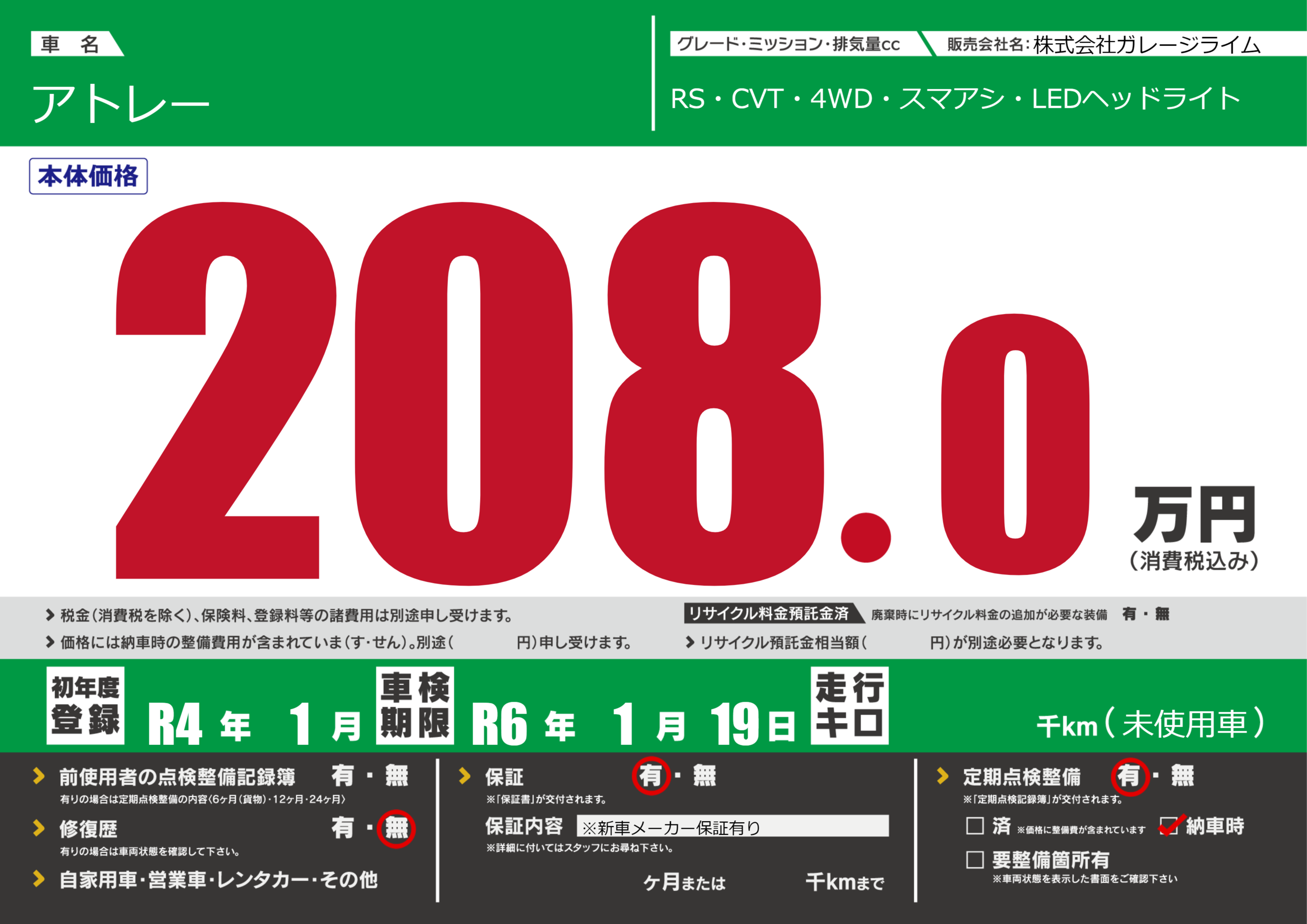 なし | 車検制限 | R6年1月19月 |