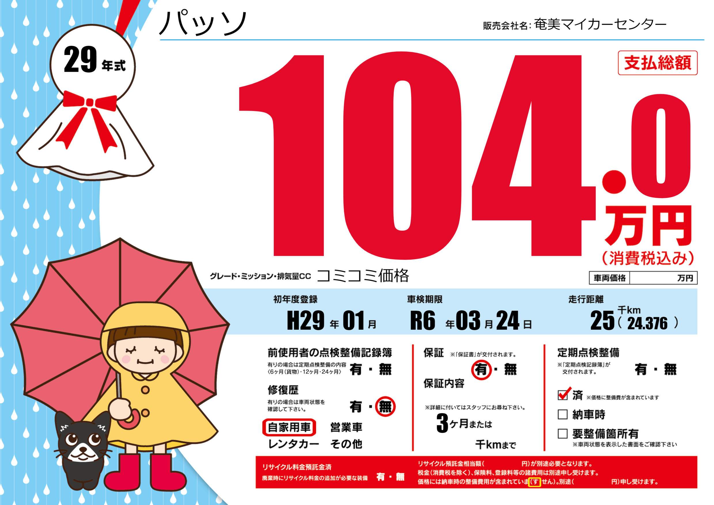 | 定期点検整備 | 定期点検整備済み | ||