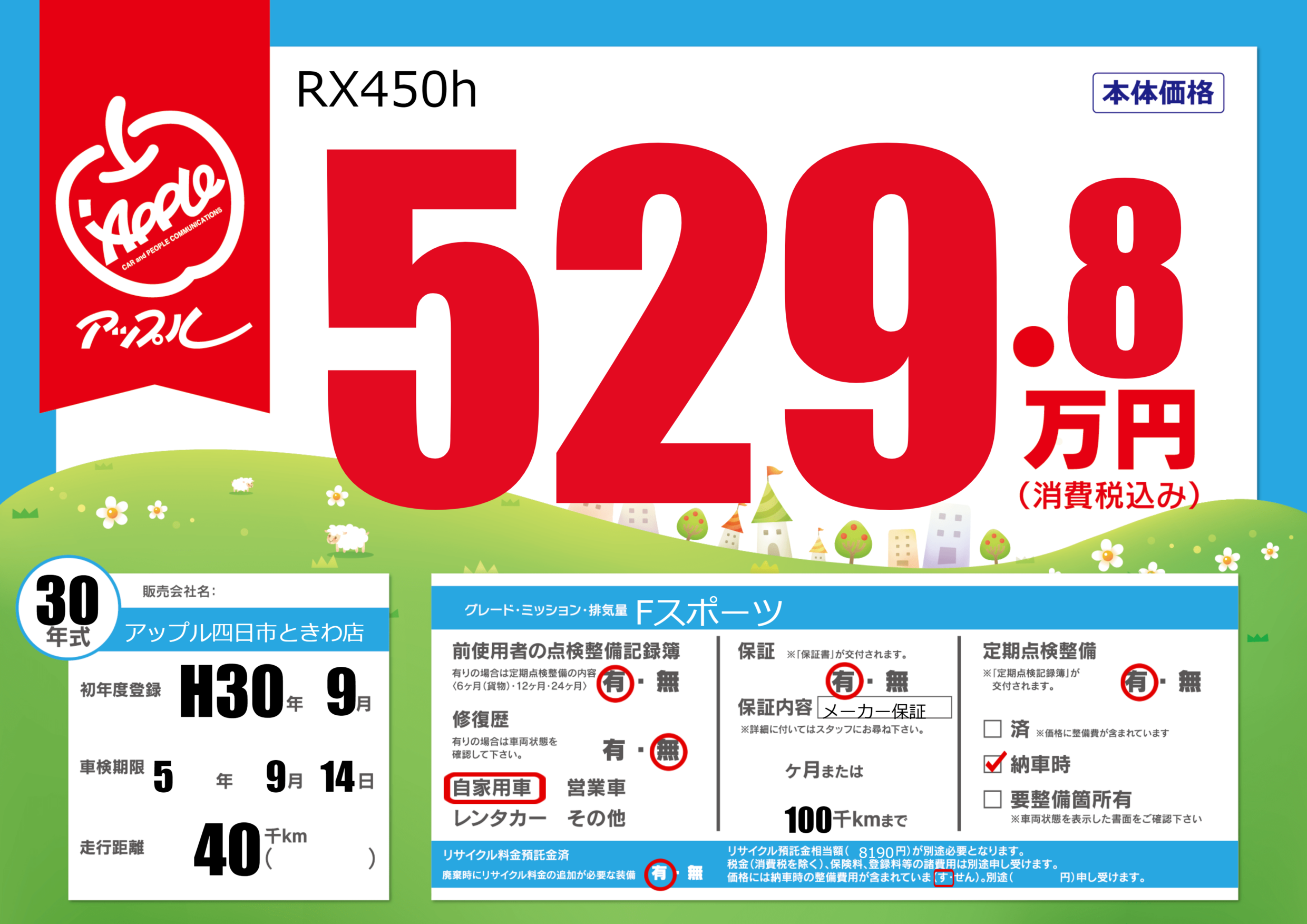 | 初年度登録 | H30年9月 | ||