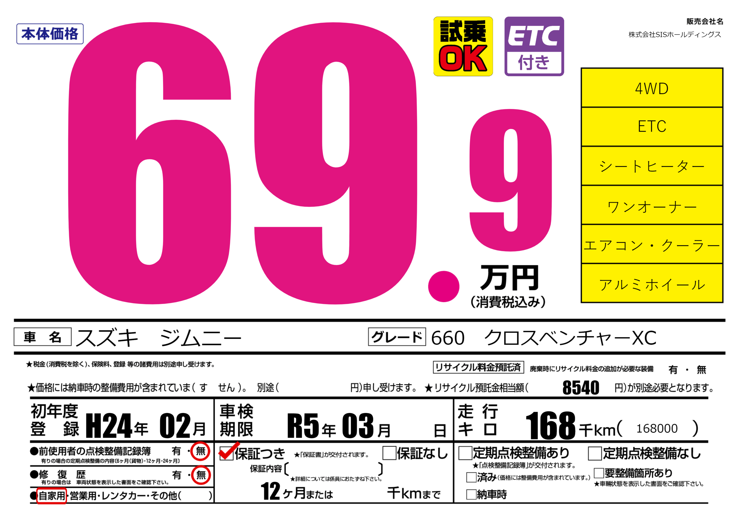 なし | 車検制限 | R5年03月---月 |