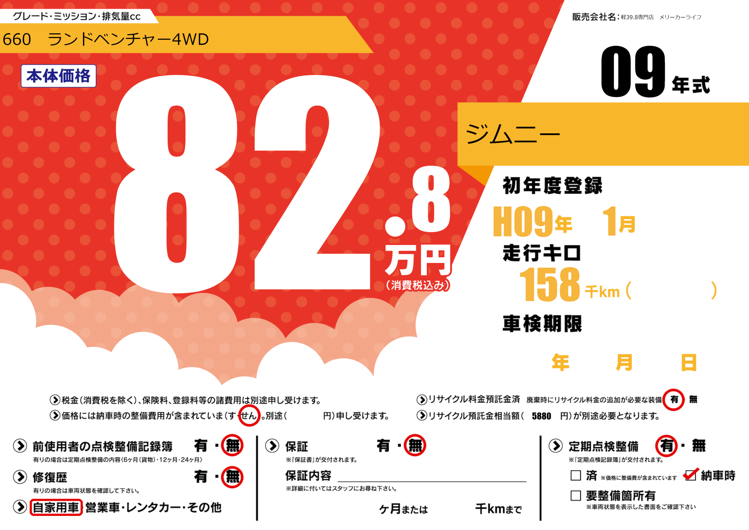 | 車名 | ジムニー | グレード ミッション 排気量 |