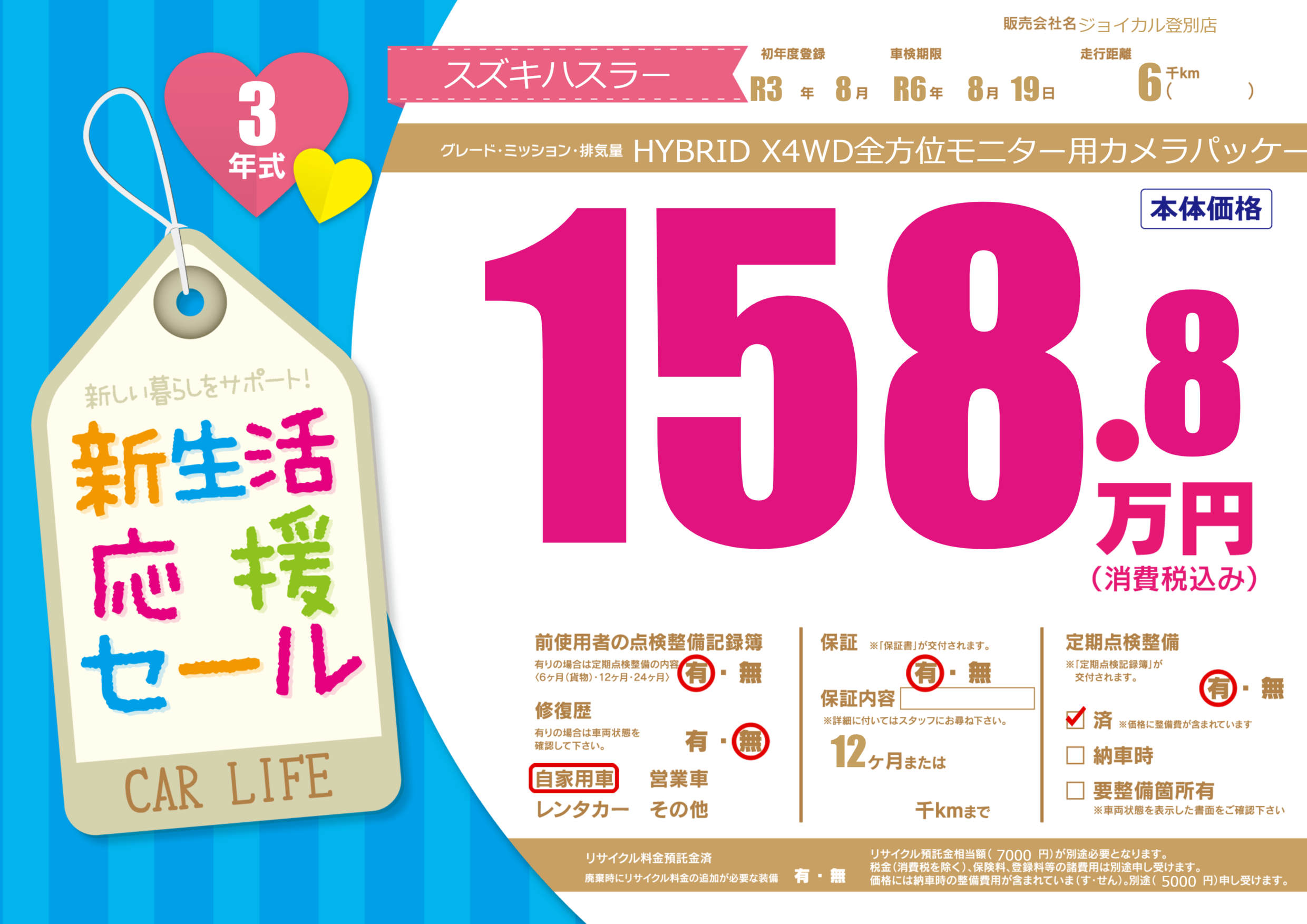 | 定期点検整備 | 定期点検整備あり 定期点検整備済み | ||