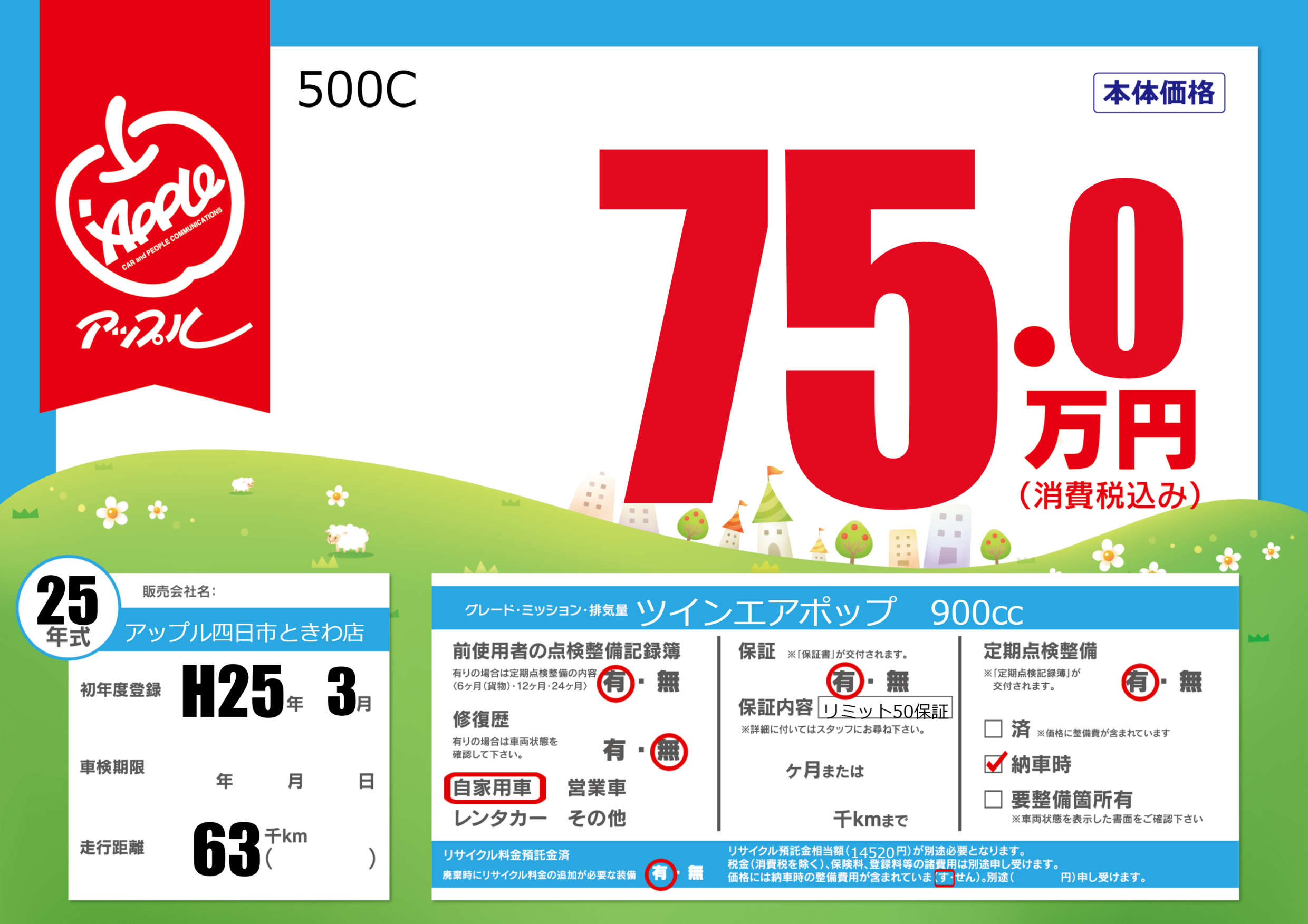 | 定期点検整備 | 定期点検整備あり 納車時あり | ||