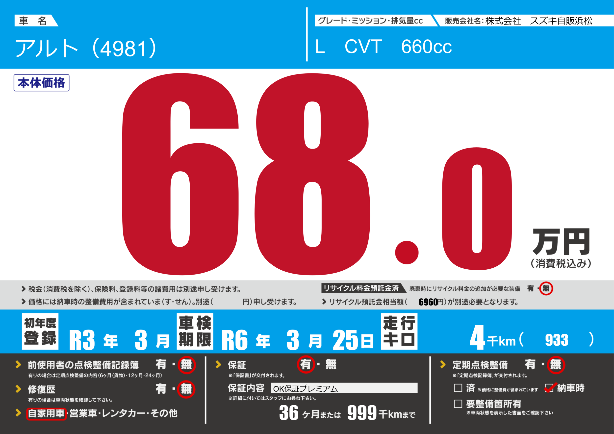 保証内容(OK保証プレミアム) 36ヶ月または999千km