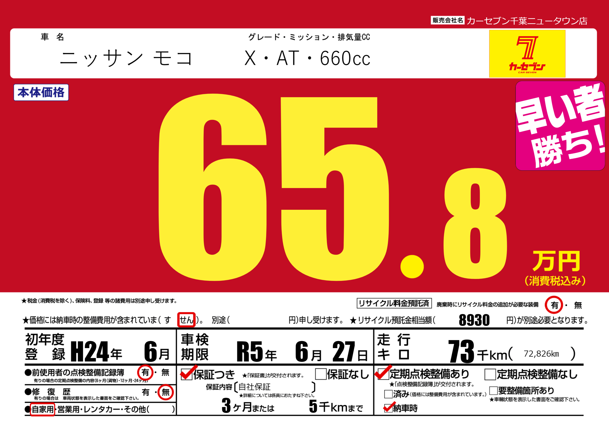 | 車名 | ニッサン モコ | グレード ミッション 排気量 |