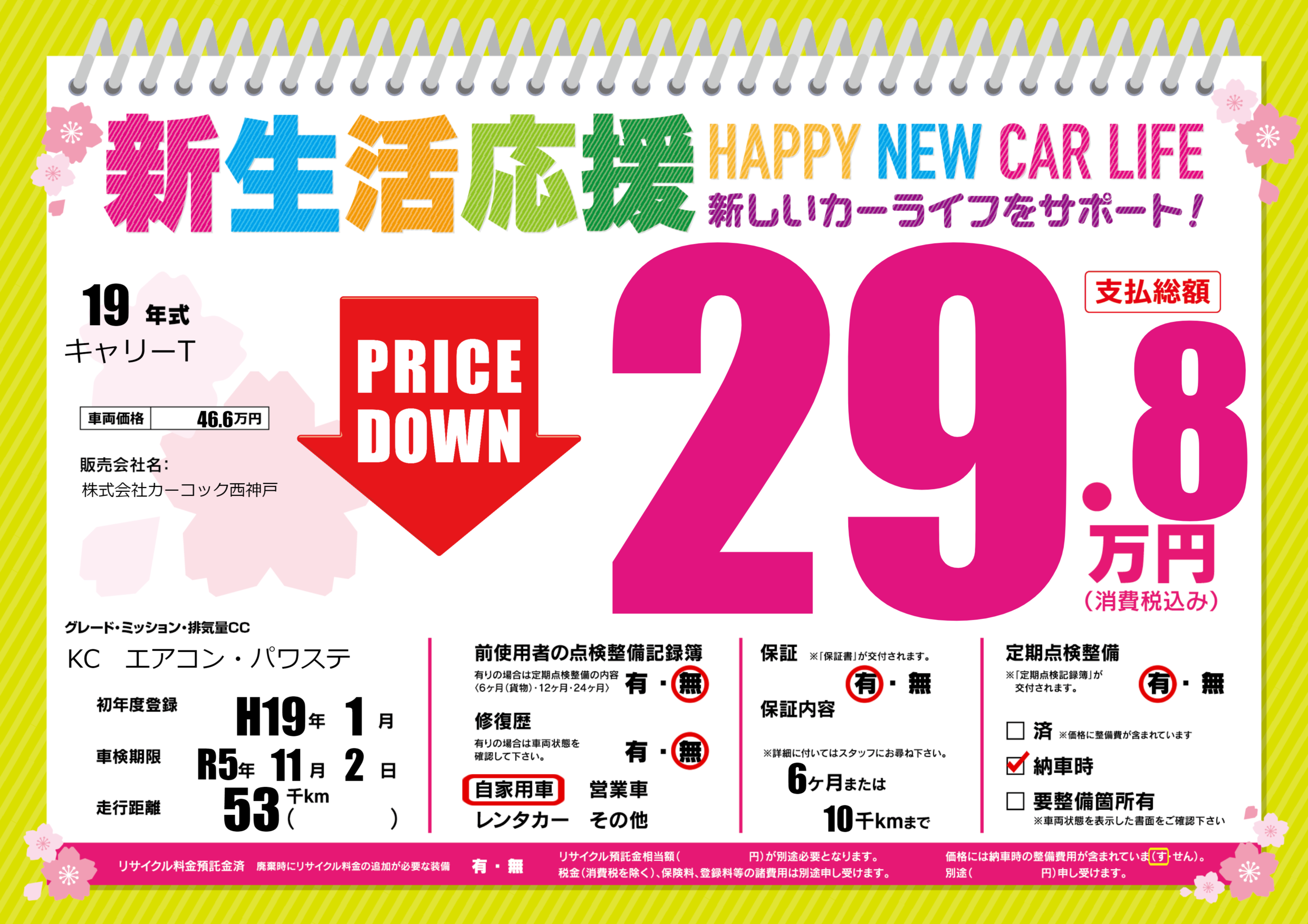| 定期点検整備 | 定期点検整備あり 納車時あり | ||