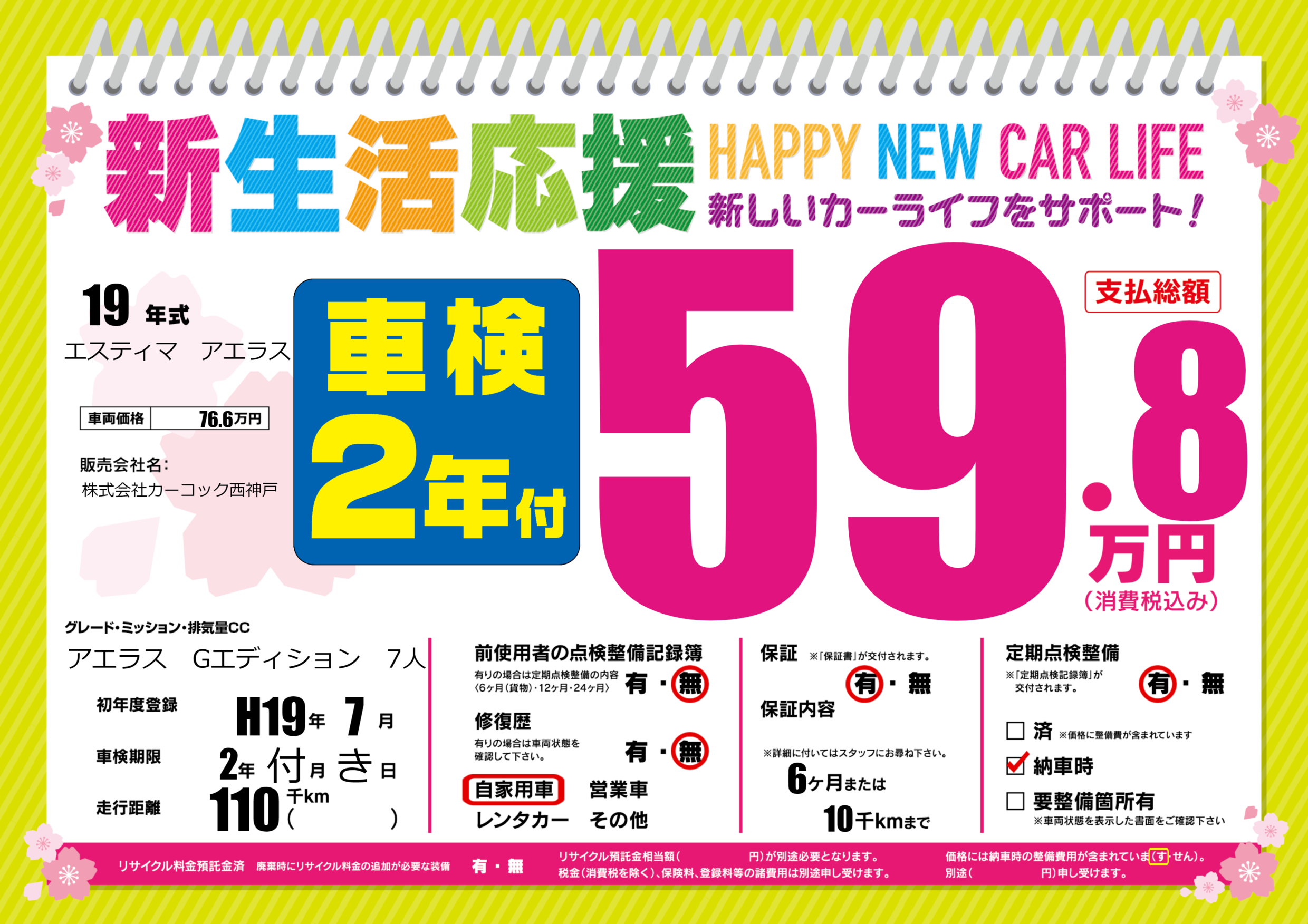 | 走行キロ | 11万km | 初年度登録 | H19年7月 |