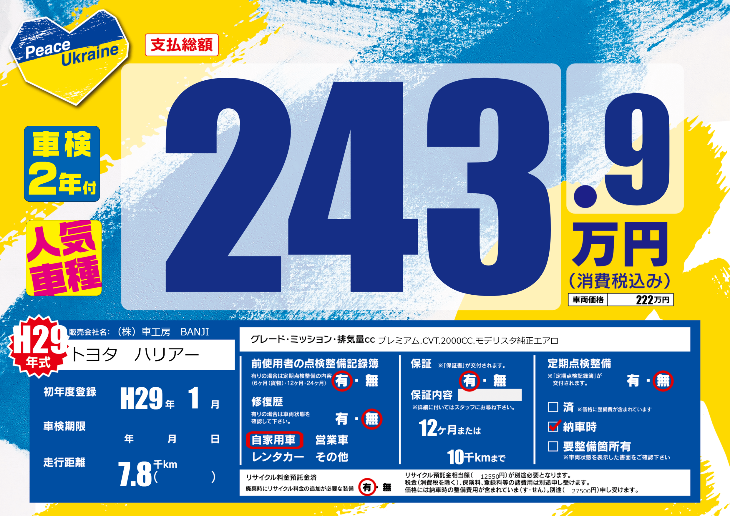 | 走行キロ | 0.7万km | 初年度登録 | H29年1月 |