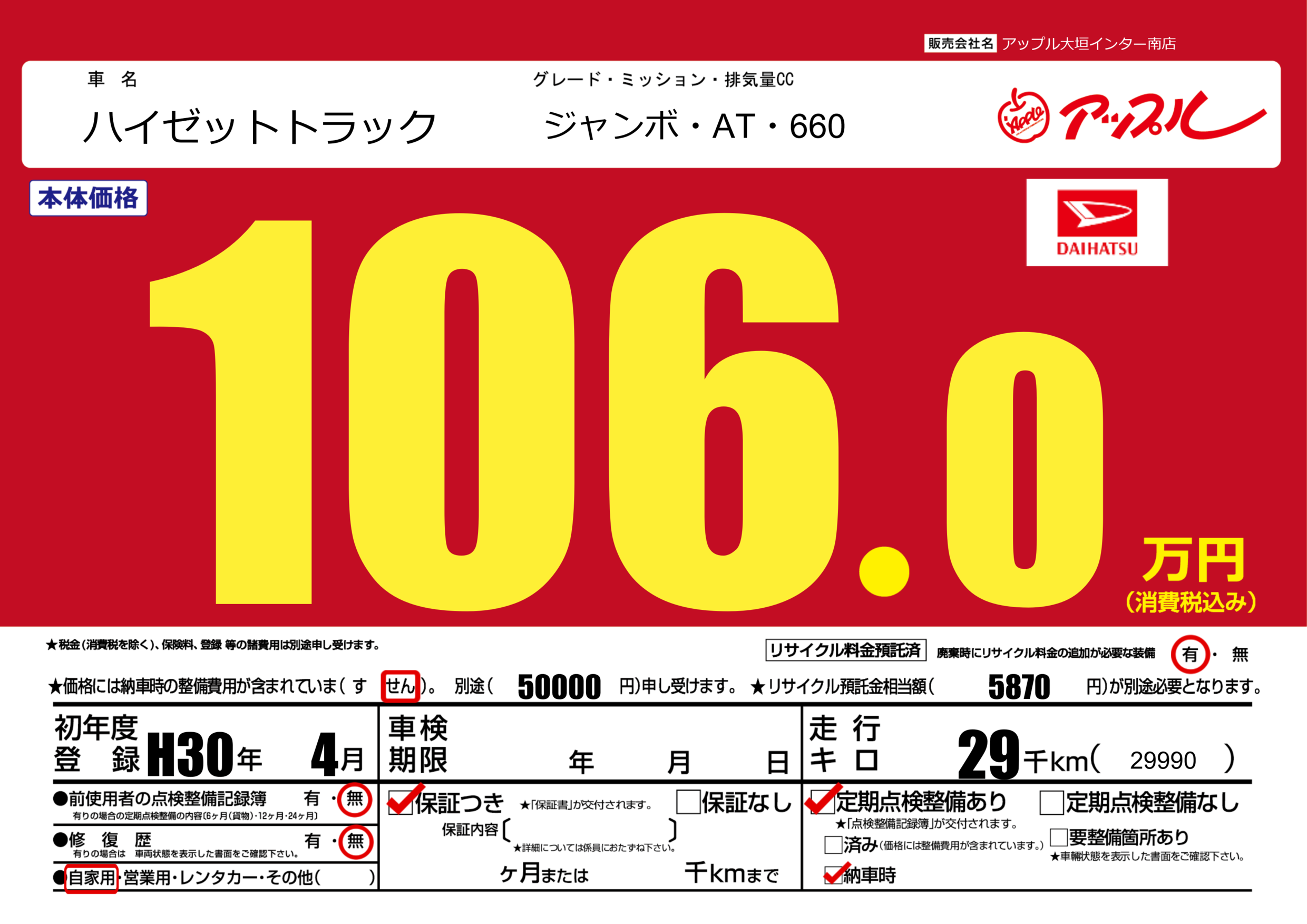 | 定期点検整備 | 定期点検整備あり 納車時あり | ||