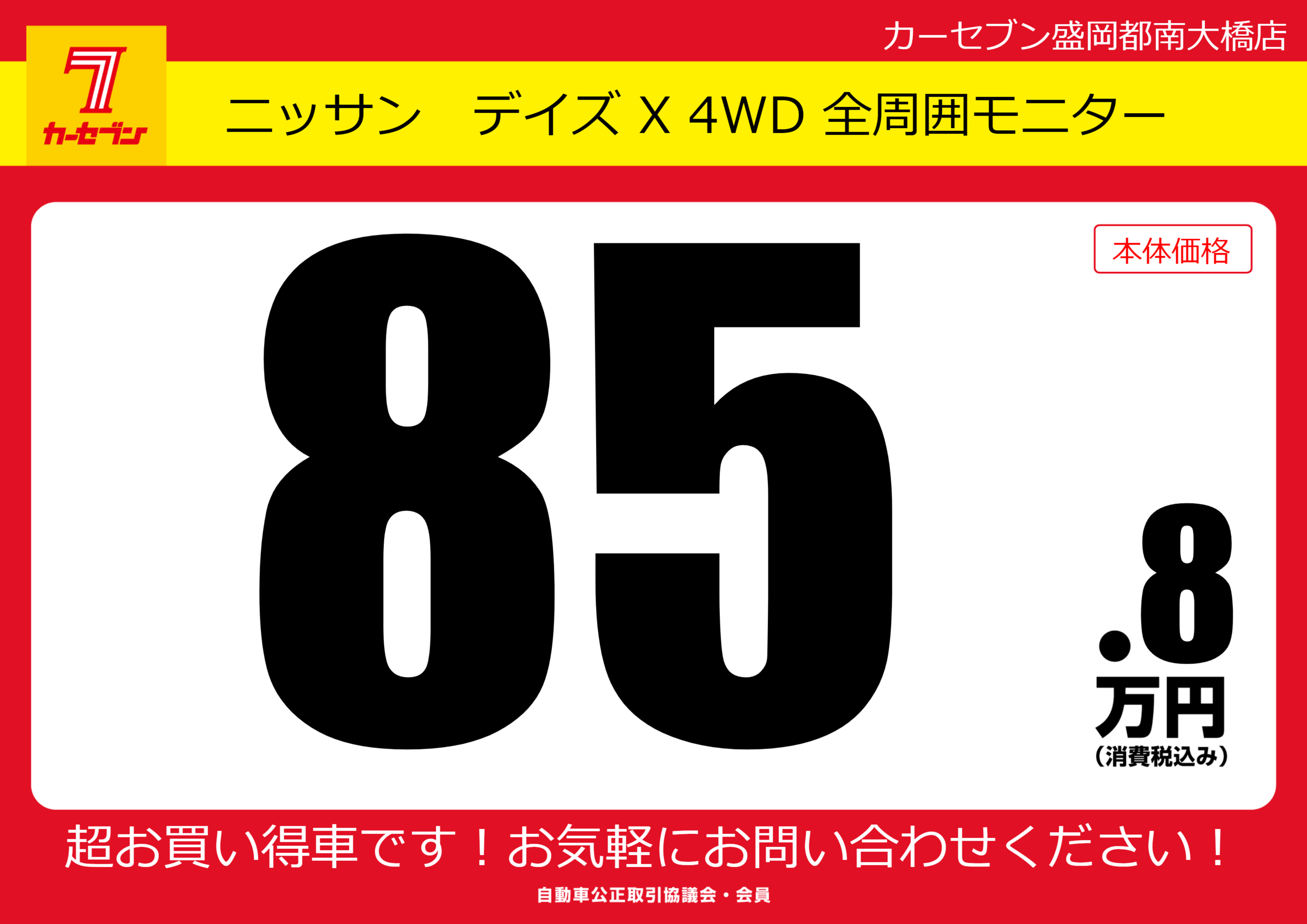| 車名 | ニッサン デイズ X 4WD 全周囲モニター | グレード ミッション 排気量 |