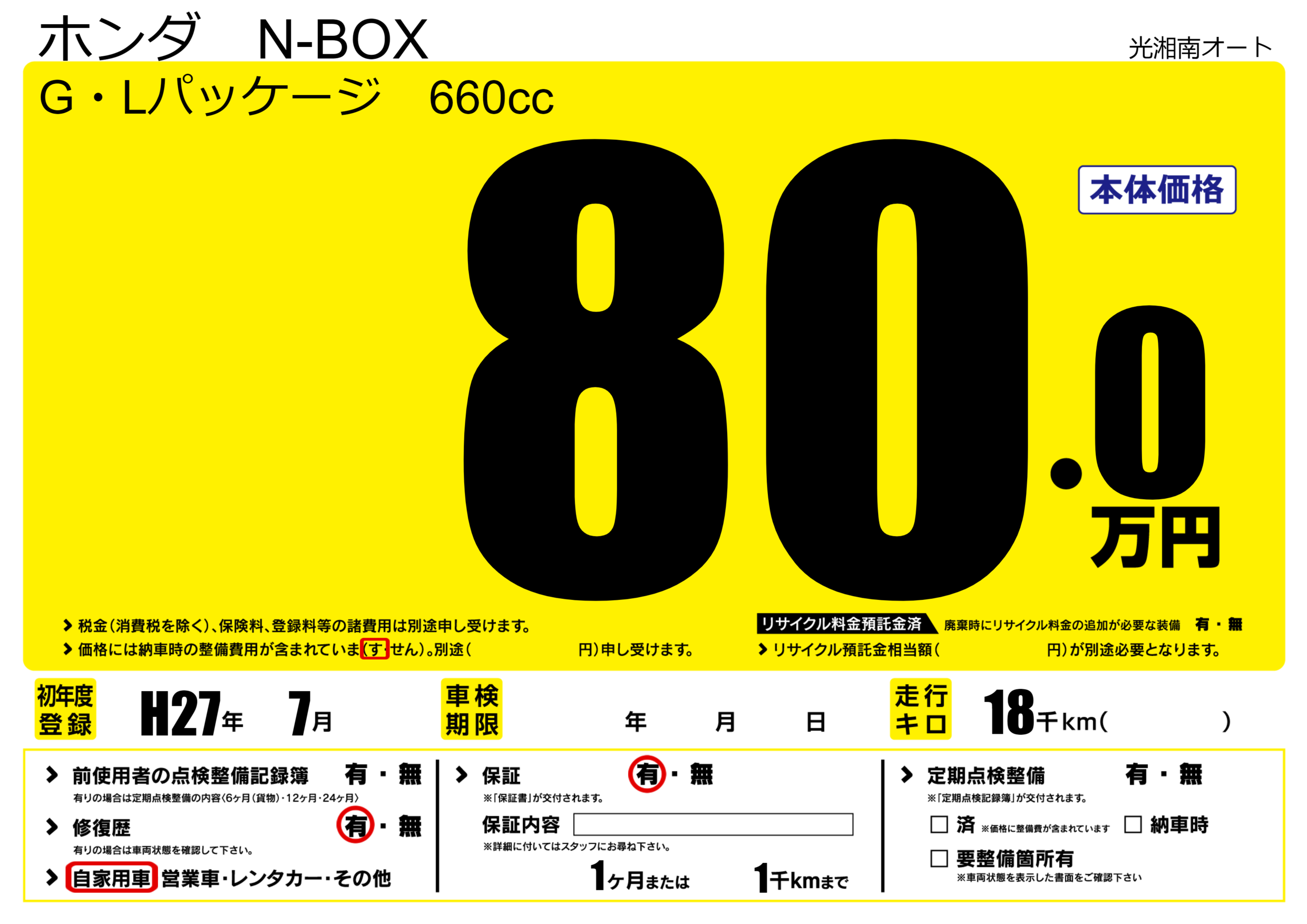 | 走行キロ | 1.8万km | 初年度登録 | H27年7月 |